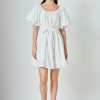 Endless Rose Women’s Dresses Pleated Detail Puff Sleeve Mini Dress | White|pink