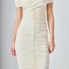 A sexy midi dress that’ll make you feel glamorous on any special evening. The stretchy, ruched fabric creates a unique silhouette that shows off your curves but allows you to remain comfortable. Plus, this midi dress can either be worn off-shoulder or on-shoulder depending on what look makes you feel best.