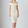 A sexy midi dress that’ll make you feel glamorous on any special evening. The stretchy, ruched fabric creates a unique silhouette that shows off your curves but allows you to remain comfortable. Plus, this midi dress can either be worn off-shoulder or on-shoulder depending on what look makes you feel best.