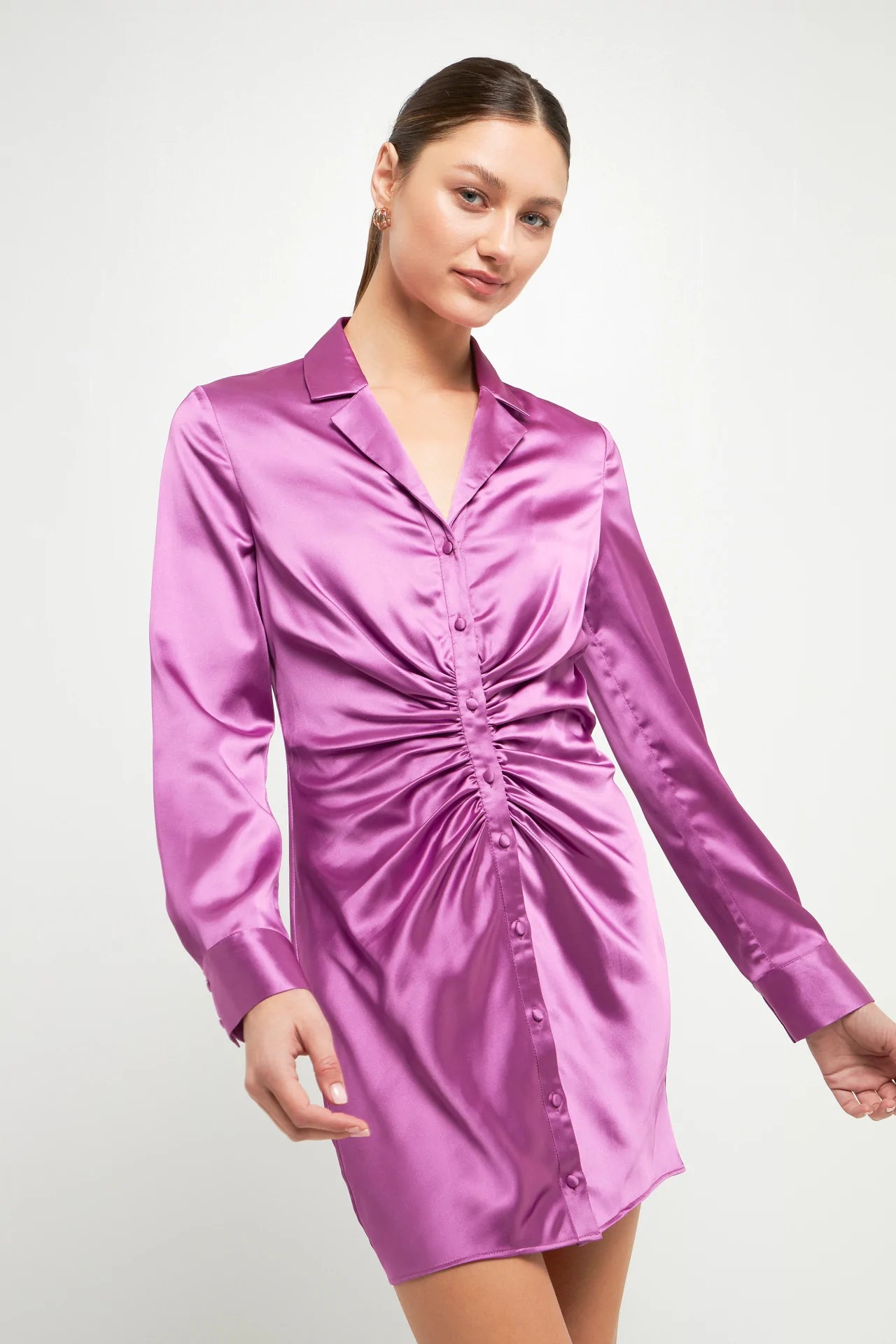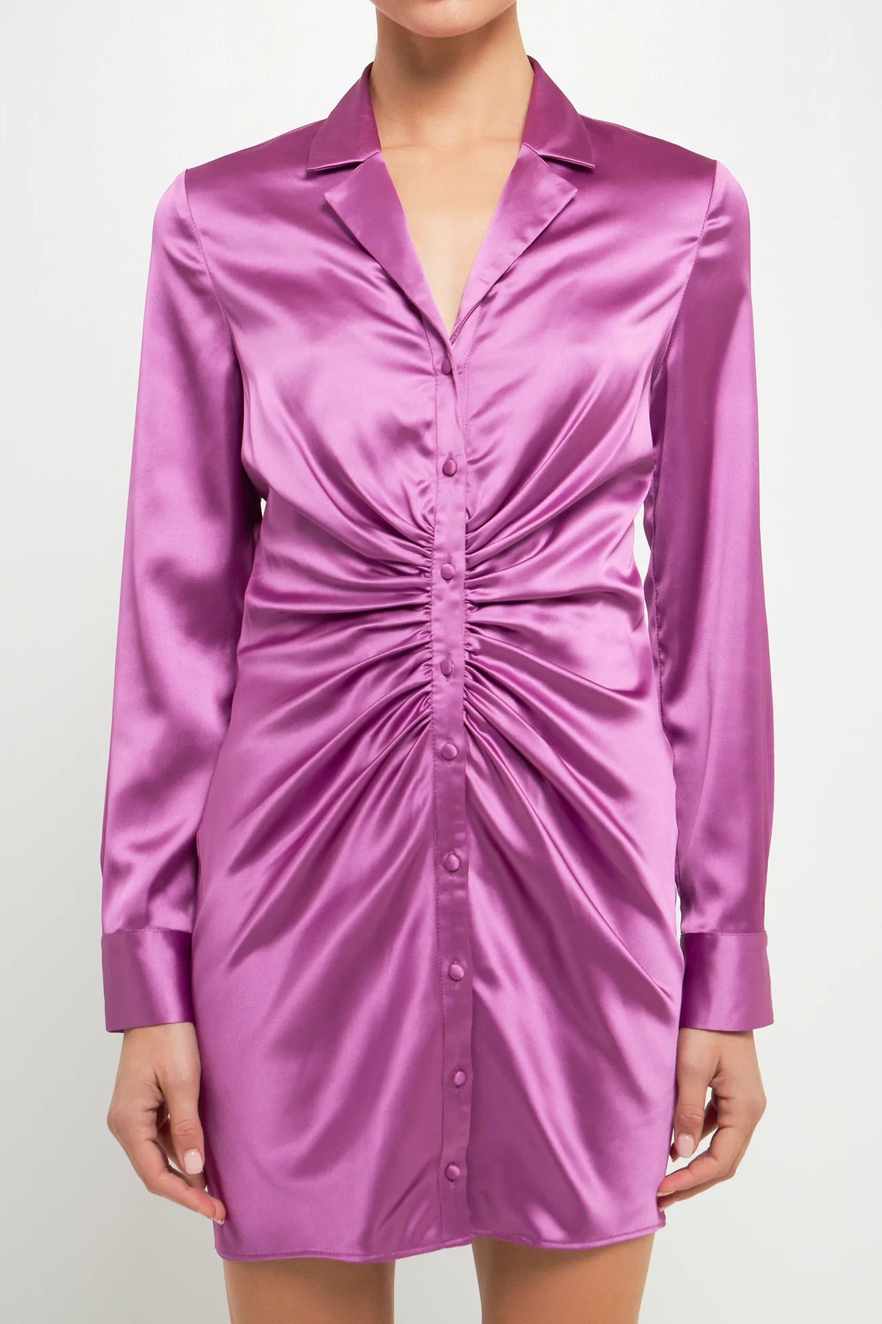 Endless Rose Women’s Dresses Satin Ruched Long-sleeve Mini Dress | Grape