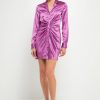 Endless Rose Women’s Dresses Satin Ruched Long-sleeve Mini Dress | Grape