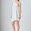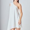Make a statement in this stylish Shoulder Pintucked Asymmetrical Mini Dress. Its one-shoulder design features an asymmetrical waterfall hemline and shoulder pintuck detail for an eye-catching piece. Dress it up or down for any occasion.