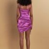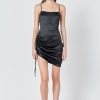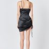 A sleek and seductive number, this side-ruched satin dress is perfect for any special occasion. The luxurious satin material will make you feel like a million bucks, while the functional side ruching allows you to adjust the dress to your desired fit. The mini to midi length is perfect for showing off your legs, and the asymmetrical hemline adds a touch of glamor. The side zipper allows for easy on and off, and the lining ensures a comfortable and smooth fit.