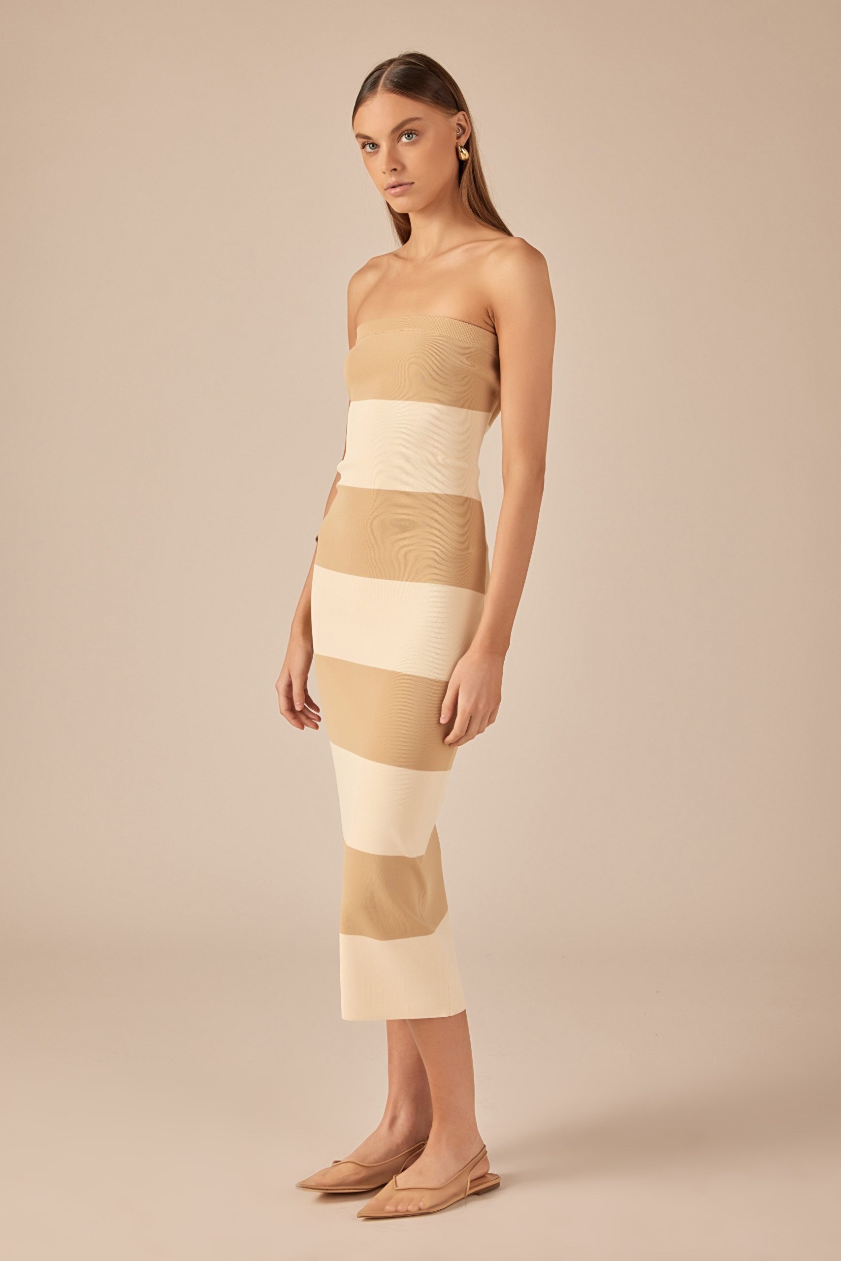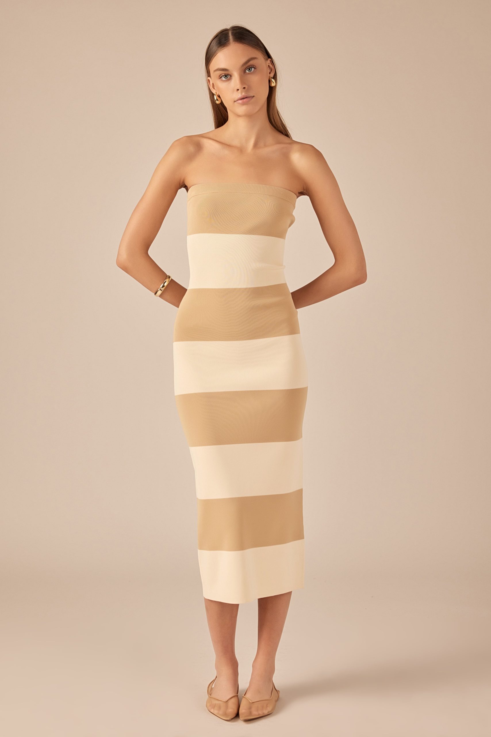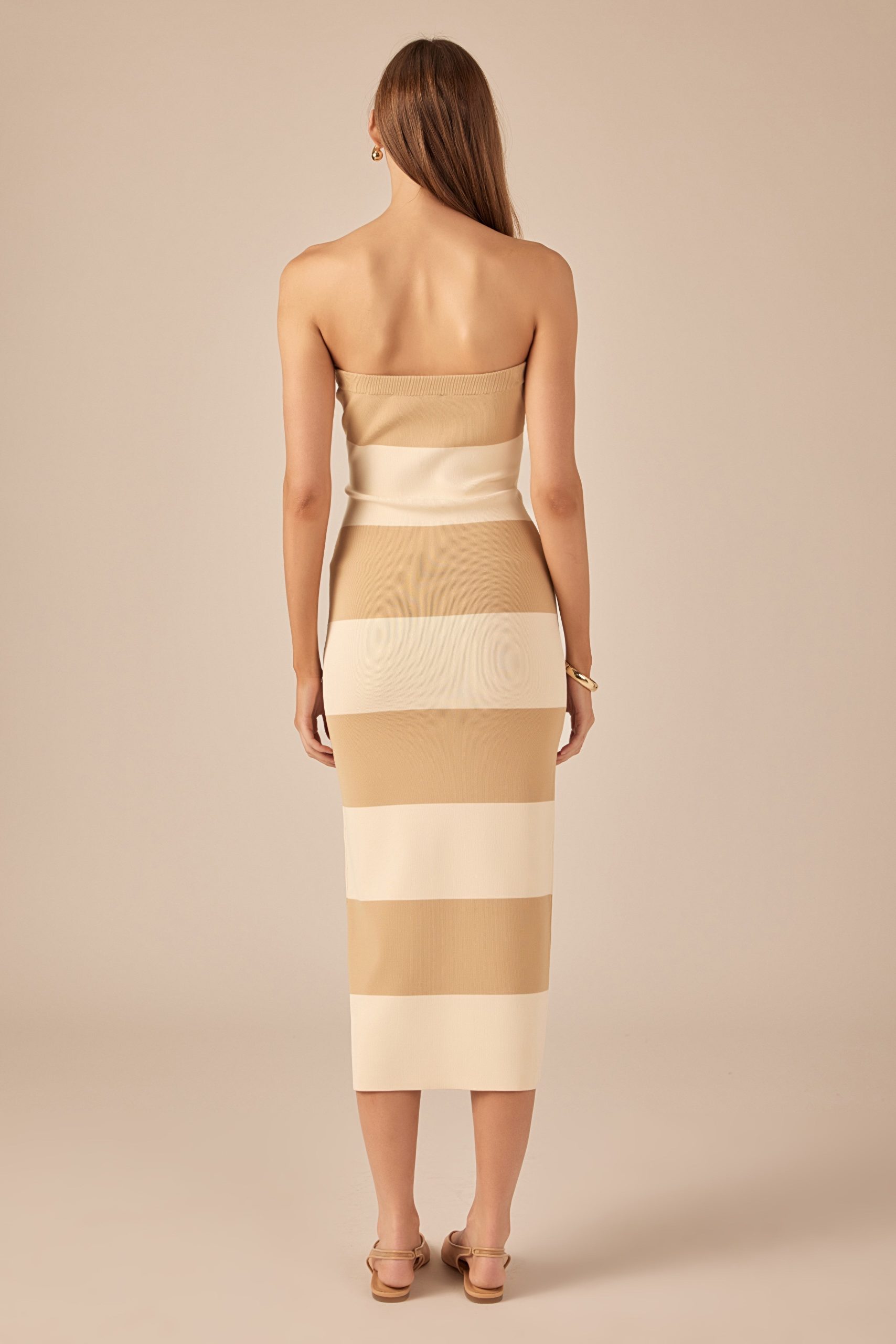 Introducing our Stripe Tube Maxi Dress, perfect for any stylish occasion. Bold and eye-catching, the stripe pattern adds a trendy touch, while the tube top design and sleeveless style bring a sexy, bare-shoulder look. The rib and elastic at the edge of the top ensure a secure yet comfortable fit. Made with high-quality materials, our dress is lightweight and breathable for all-day wear. Dress it up with heels for a night out or pair with sneakers for a casual day look. Upgrade your wardrobe and stand out with our versatile Stripe Tube Mini Dress.