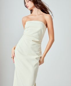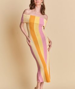 Our Striped Strapless Midi Dress is a must-have for your wardrobe! Made from high-quality knitdown fabric this midi dress will flatter your figure while keeping you comfortable all day. The strapless design adds a touch of elegance perfect for any occasion. The midi length provides just the right amount of coverage making it a versatile choice for any season. With its trendy striped pattern this dress will surely turn heads. Don’t miss out on this fashionable and timeless piece! Order now and elevate your style game.