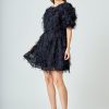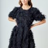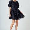 Add a touch of glamor to your everyday look with our Textured Mesh Mini Dress. The intricate mesh fabric and puffy sleeves create a whimsical look. This dress can easily be taken from day to night, and the relaxed fit means you’ll be comfortable all day long. Pair this dress with heels and a clutch for a look that will turn heads on your nights out, or style it with a denim jacket and sneakers for a cute and casual daytime outfit.