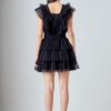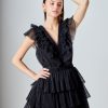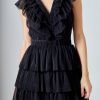 This elegant Tulle Ruffle Tiered Mini Dress is perfect for special occasions. It features a flattering front V neckline and a square neckline at the back complete with romantic ruffle detailing throughout. The tiered skirt adds a touch of feminine charm making this dress a must-have for your wardrobe. It’s a timeless piece that’s sure to turn heads at any event.