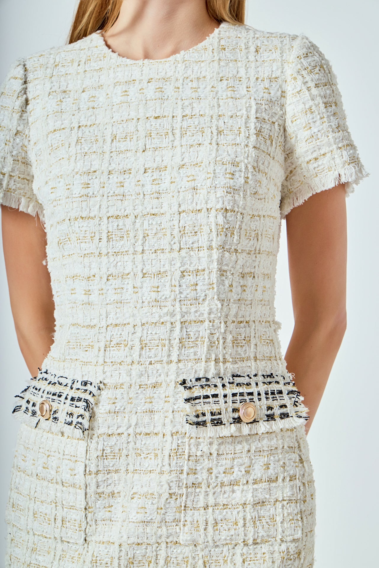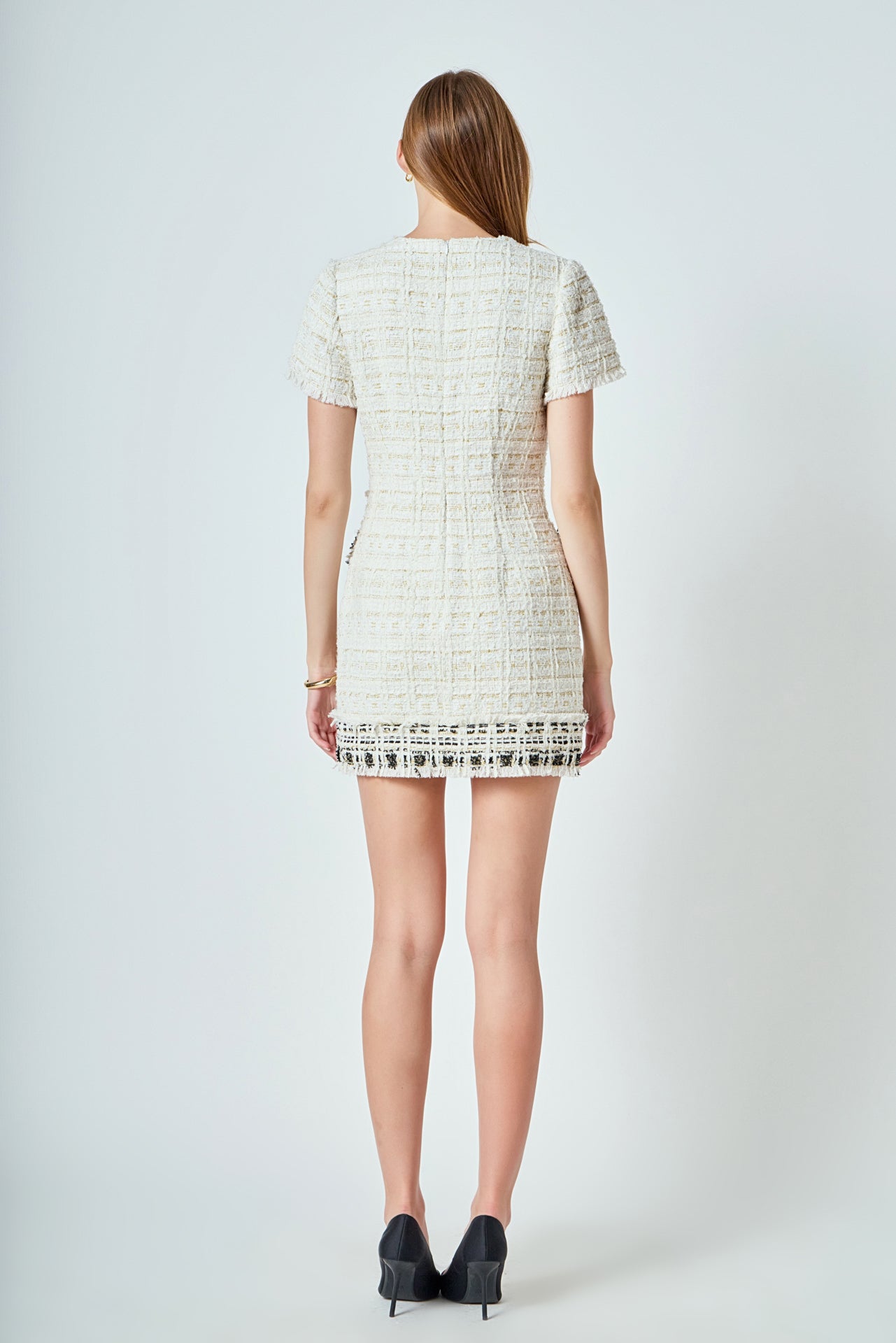 Endless Rose Women’s Dresses Tweed Fringed Mini Dress | Ivory Multi
