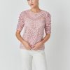 - Ruched elbow-length sleeves