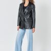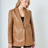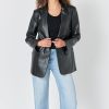 Up your style game with this Faux Leather Blazer and accomplish a chic, put-together look. Designed with shoulder pads, flap pockets, and notch lapels, this blazer will become your new go-to piece. Style it with a tweed dress, for work, or pair it with your favorite jeans, and a crop top, for drinks with friends.