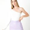 Endless Rose Women’s Faux Leather Front Slits Skort | Green|cream|lavender|silver