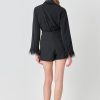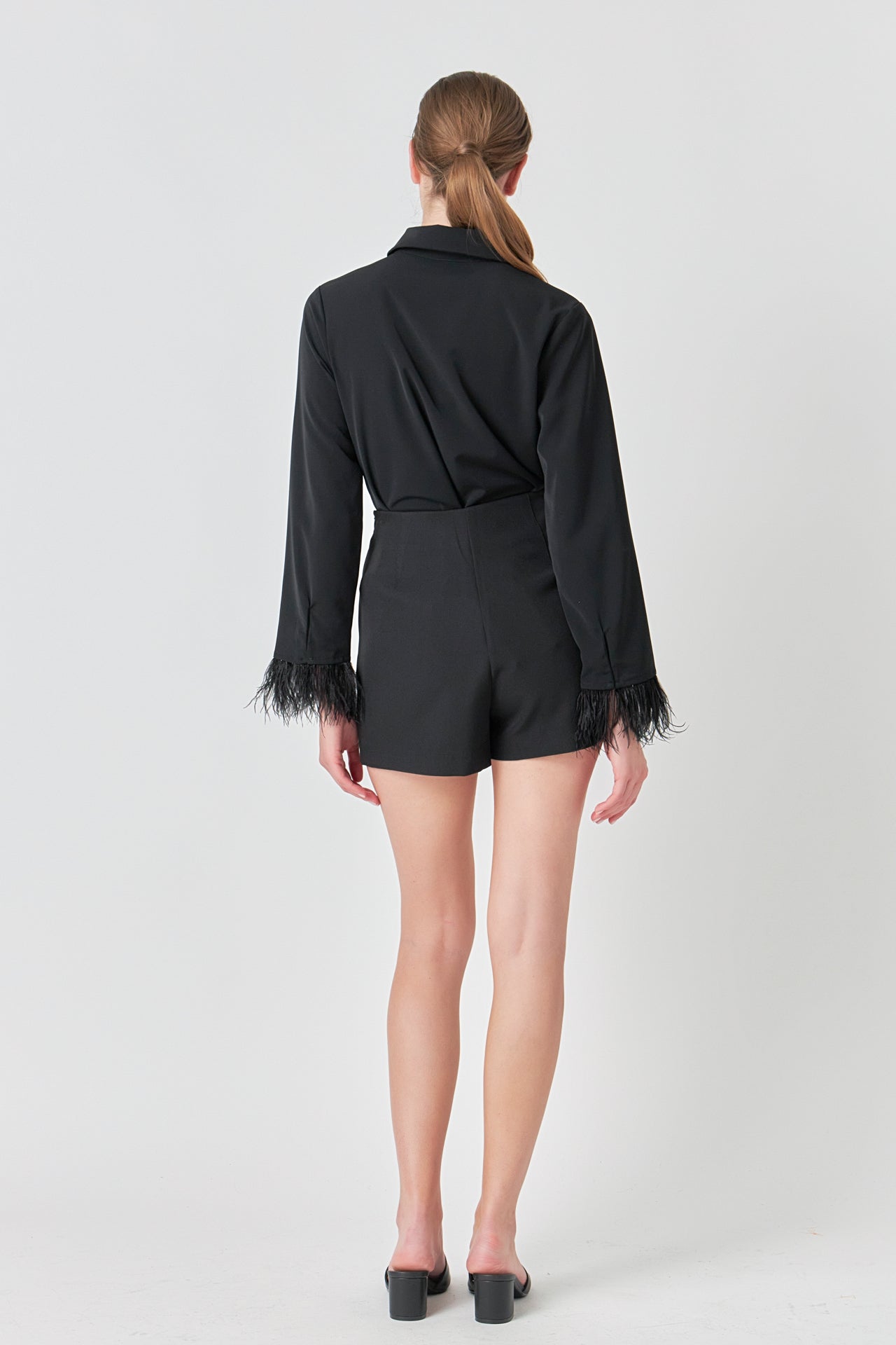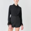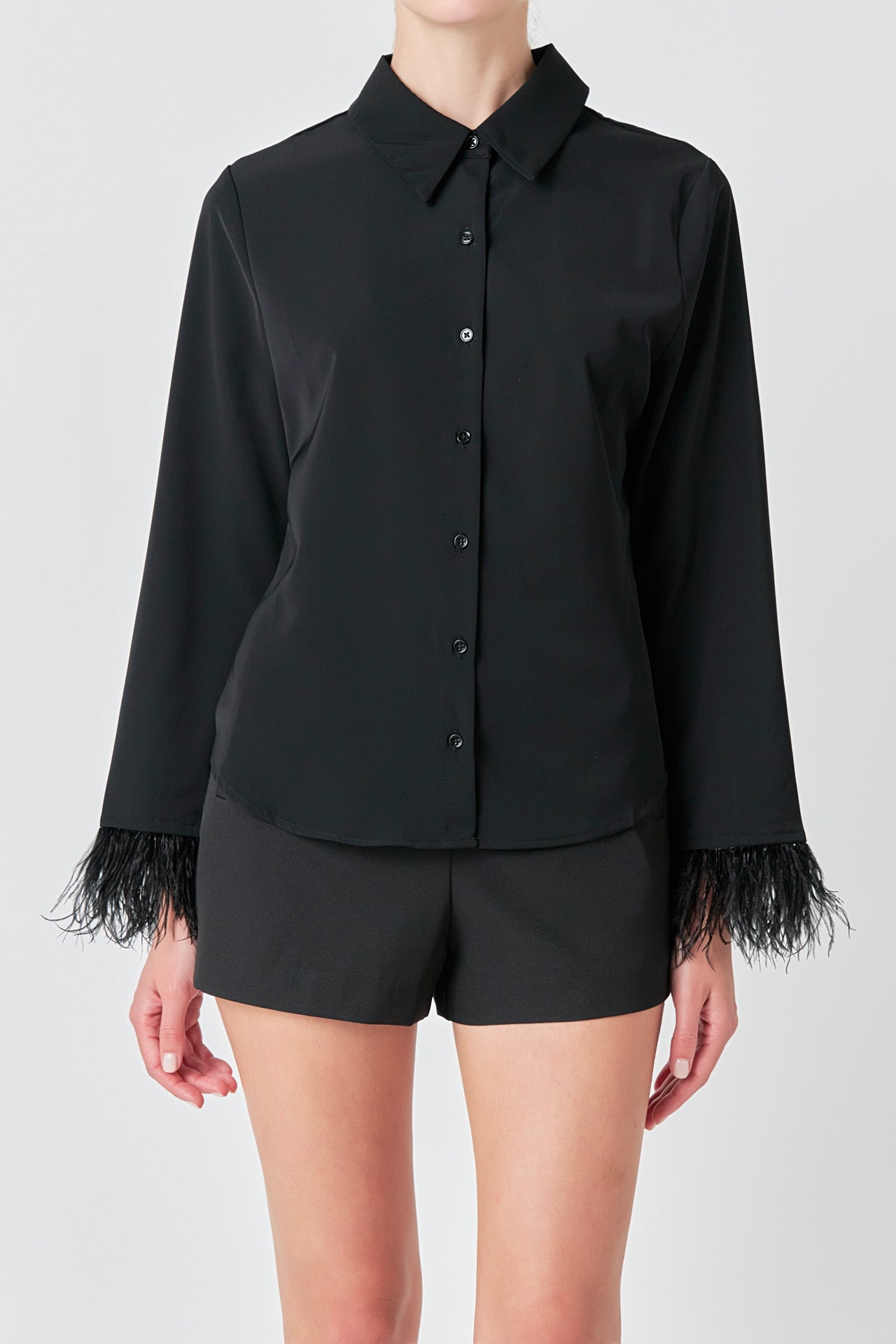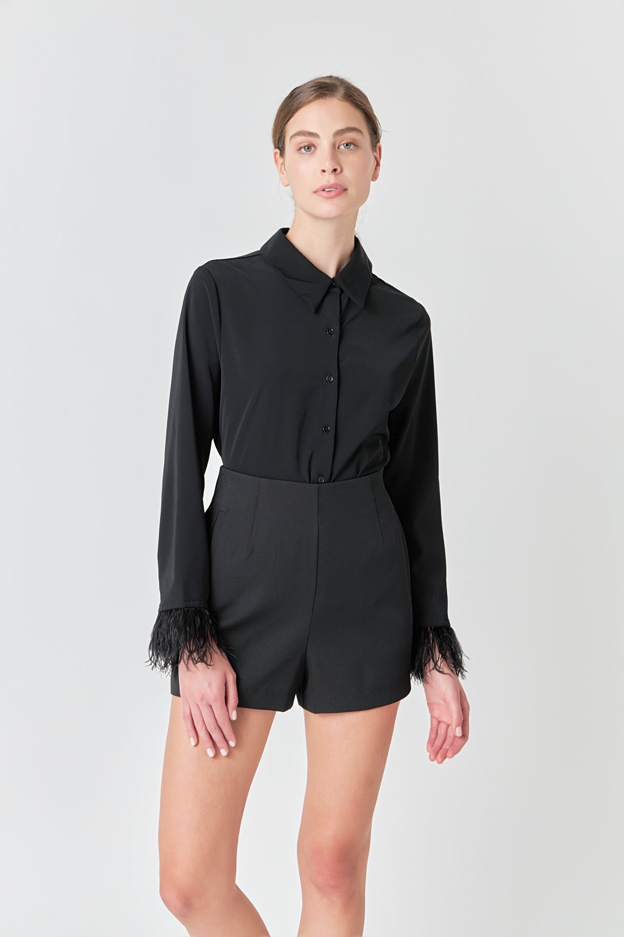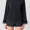 Endless Rose Women’s Feather Trimmed Fitted Blouse Top | Black