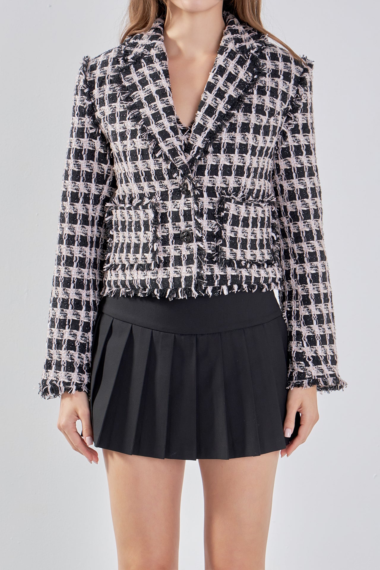 Endless Rose Women’s Fringed Tweed Blazer | Black & Pink