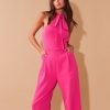 Add some style to your wardrobe with this stunning Strapless Jumpsuit. Featuring a Front neck bow tie and Side pockets this Jumpsuit is perfect for looking both fabulous and comfortable. Back welt pockets and Hidden side zipper close add the perfect finishing touches. With its modern design it is sure to turn heads and make a statement. Shop this Front Tie Strapless Jumpsuit today!