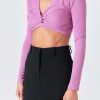 This top is the perfect mix of fun and flirty. The front twist cropped long-sleeve top can be dressed up or down, making it perfect for any occasion. The fitted, long sleeve, the crop-length top is made of a soft knit material that is sure to keep you comfortable all day long.