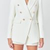 Endless Rose Women’s Gold Buttoned Tweed Blazer | White
