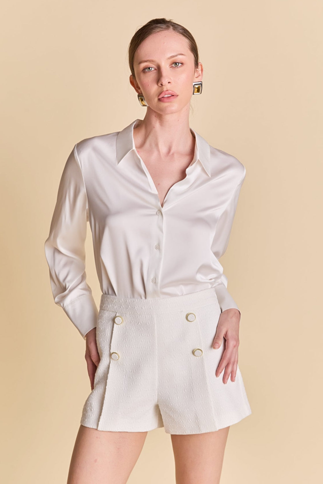 Endless Rose Women’s High Waisted Tweed Shorts | White