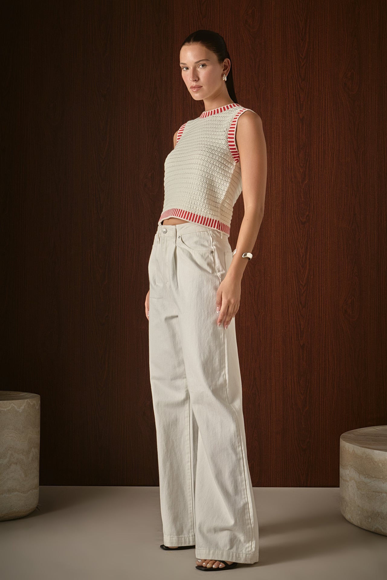 Endless Rose Women’s Knit Bordered Top | Cream & Red