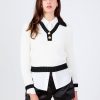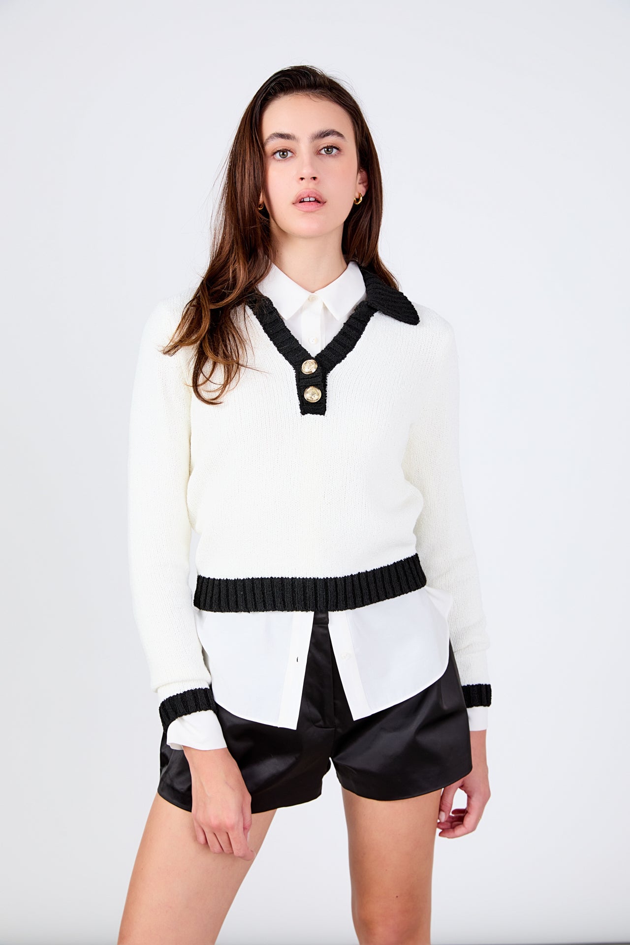 Endless Rose Women’s Knit Collared Contrast Sweater | Ivory & Black