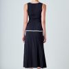 Introducing our Knit Pleated Tipped Sleeveless Top, perfect for adding a touch of elegance and modern style to your wardrobe. Crafted from high-quality knit material, this top offers comfort and durability. The contrast tipped design adds a pop of color and contrast to elevate your look. The pleated detailing on the front adds texture and dimension, making you stand out from the crowd. Complete with a round neckline, this top is versatile and can be dressed up or down for any occasion. Upgrade your style game with this must-have top.
