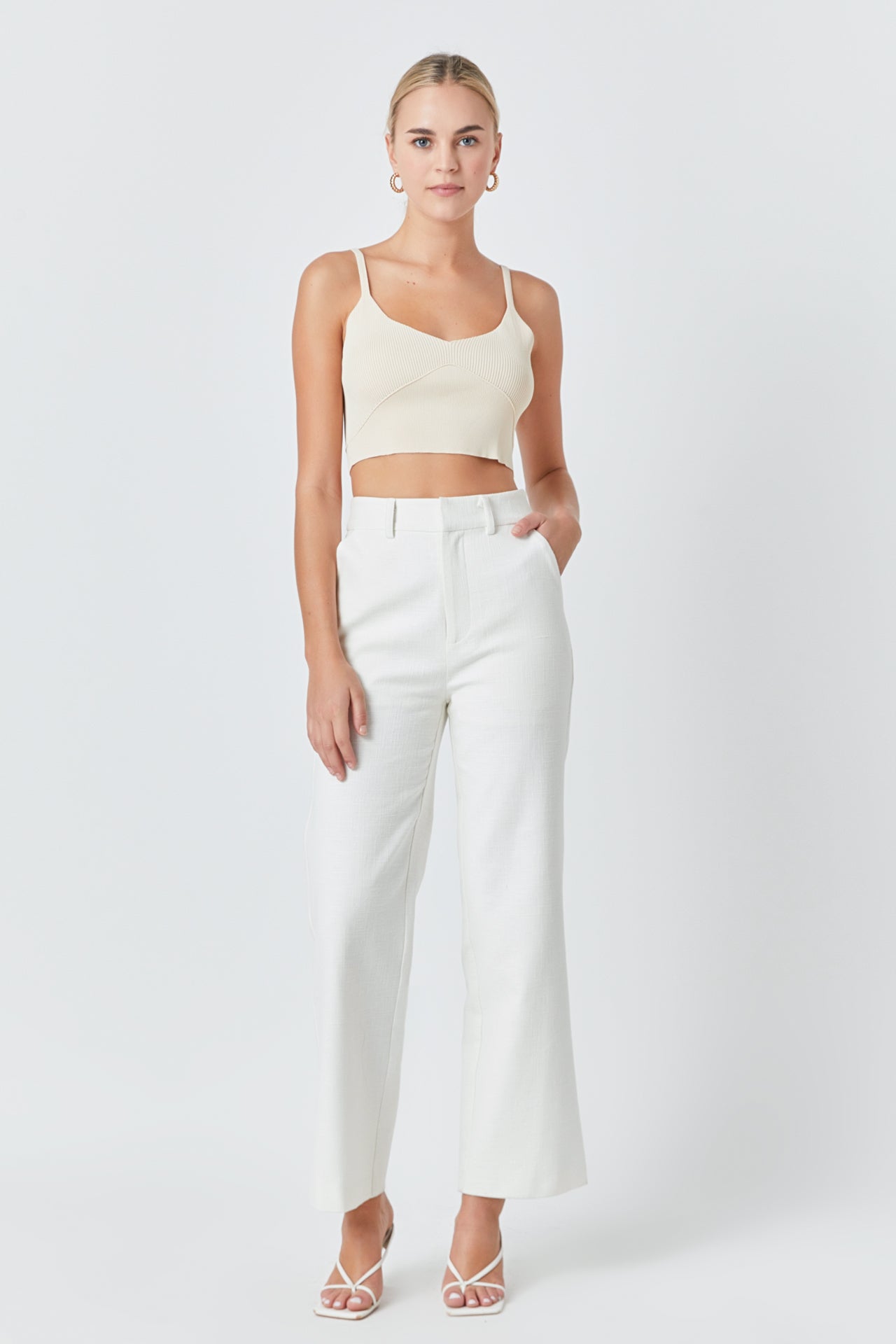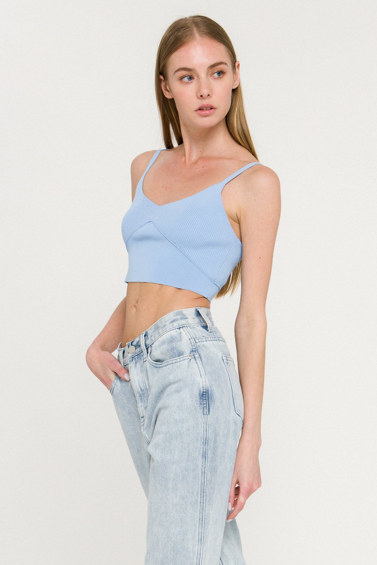 Add a touch of luxury to your everyday look. Made with a soft and comfortable knit fabric, this top is perfect for layering or wearing on its own. With delicate shoulder straps and a fitted silhouette, this top will add some glamor to any outfit. Wear it with jeans and a blazer for a night out, or dress it up with some trousers for work.