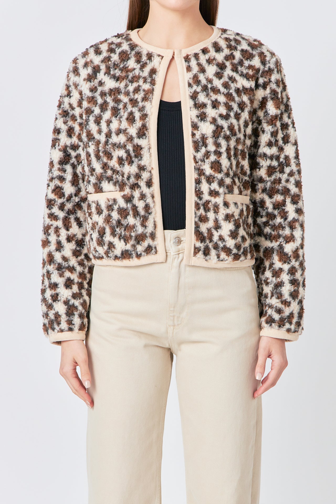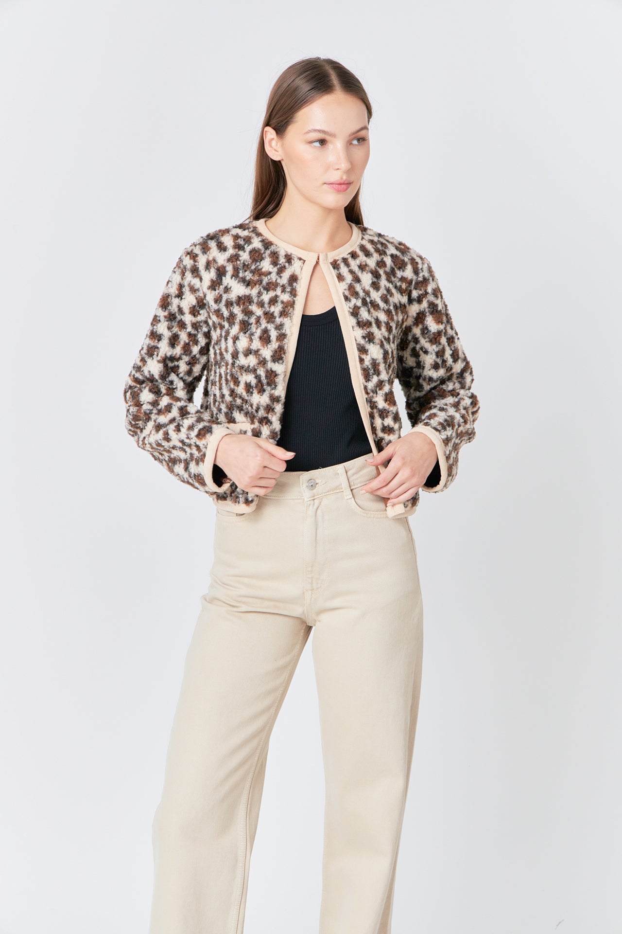 Endless Rose Women’s Leopard Sherpa Jacket | Ivory Multi