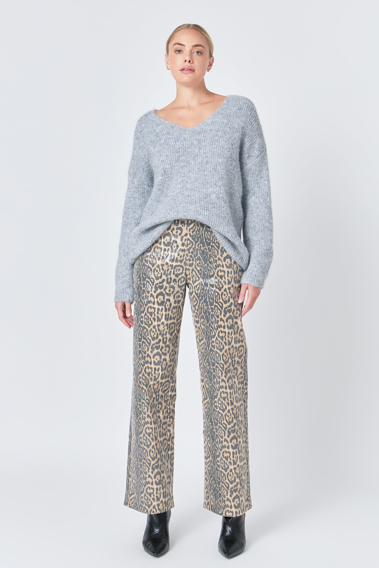 Unleash your wild side with our Leopard Wide Leg Denim pants. Made with a fierce leopard print, these pants are sure to make a statement. The addition of sequins adds a touch of glamour to these oversized pants. The wide leg design is not only on-trend, but also flattering for all body types. Pair with a simple top for a casual day look or dress it up with heels for a night out. These pants are perfect for those who want to stand out from the crowd. Shop now for the ultimate animal-inspired fashion.
