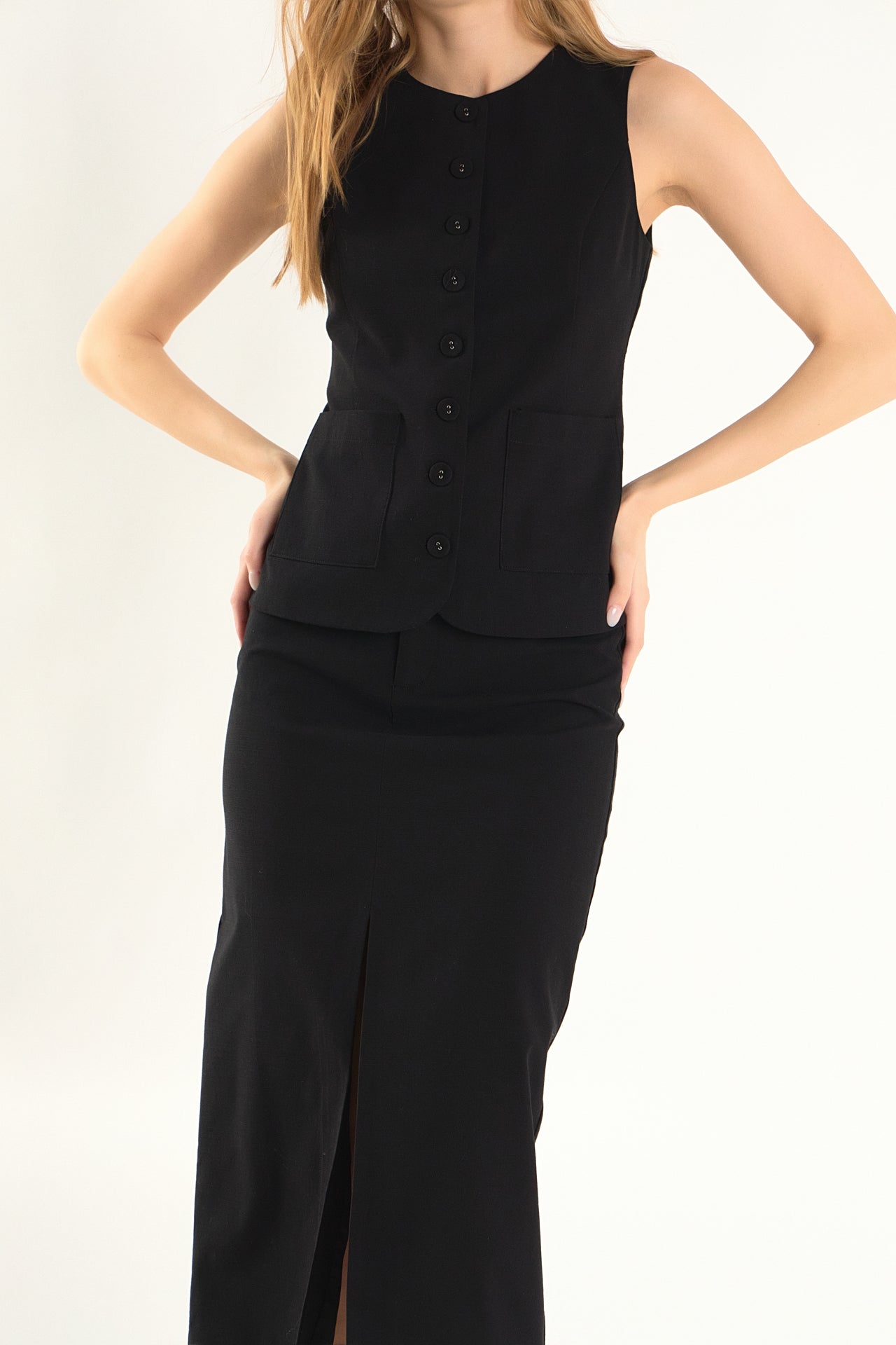 Introducing our must-have Margaux Sleeveless Linen Vest, perfect for staying cool and stylish this season. Made of high-quality linen, this top promises breathability and durability. The long length adds an elegant touch, while the round neckline flatters any body shape. Its sleeveless design is perfect for warmer days. Versatile and easy to style, this top is a definite wardrobe staple. Elevate your summer style with our Margaux Sleeveless Linen Vest. Don’t miss out on this essential piece! Shop now and enjoy breathable comfort and effortless style.