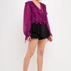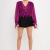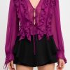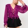 Spice up your wardrobe with this Multi Ruffled Long Sleeve Blouse from Endless Rose. This cropped blouse features a front spaghetti tie closure, ruffled bodice, long bishop sleeves, and V-neckline. With its many fun and flirty details, this blouse is perfect for a night out on the town or a day at the office.