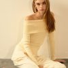 Update your wardrobe with our must-have Off Shoulder Long Sleeve Knit Top. Crafted from a soft and comfortable knit fabric, this top hugs your figure in all the right places for a flattering fit. The off shoulder design adds a touch of effortless elegance, while the long sleeves keep you covered and cozy. Perfect for dressing up or down, this top is a versatile addition to any outfit. Pair it with high-waisted jeans and heels for a night out, or layer it under a blazer for a chic office look. Shop now and stay stylish and comfortable all day long!