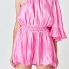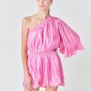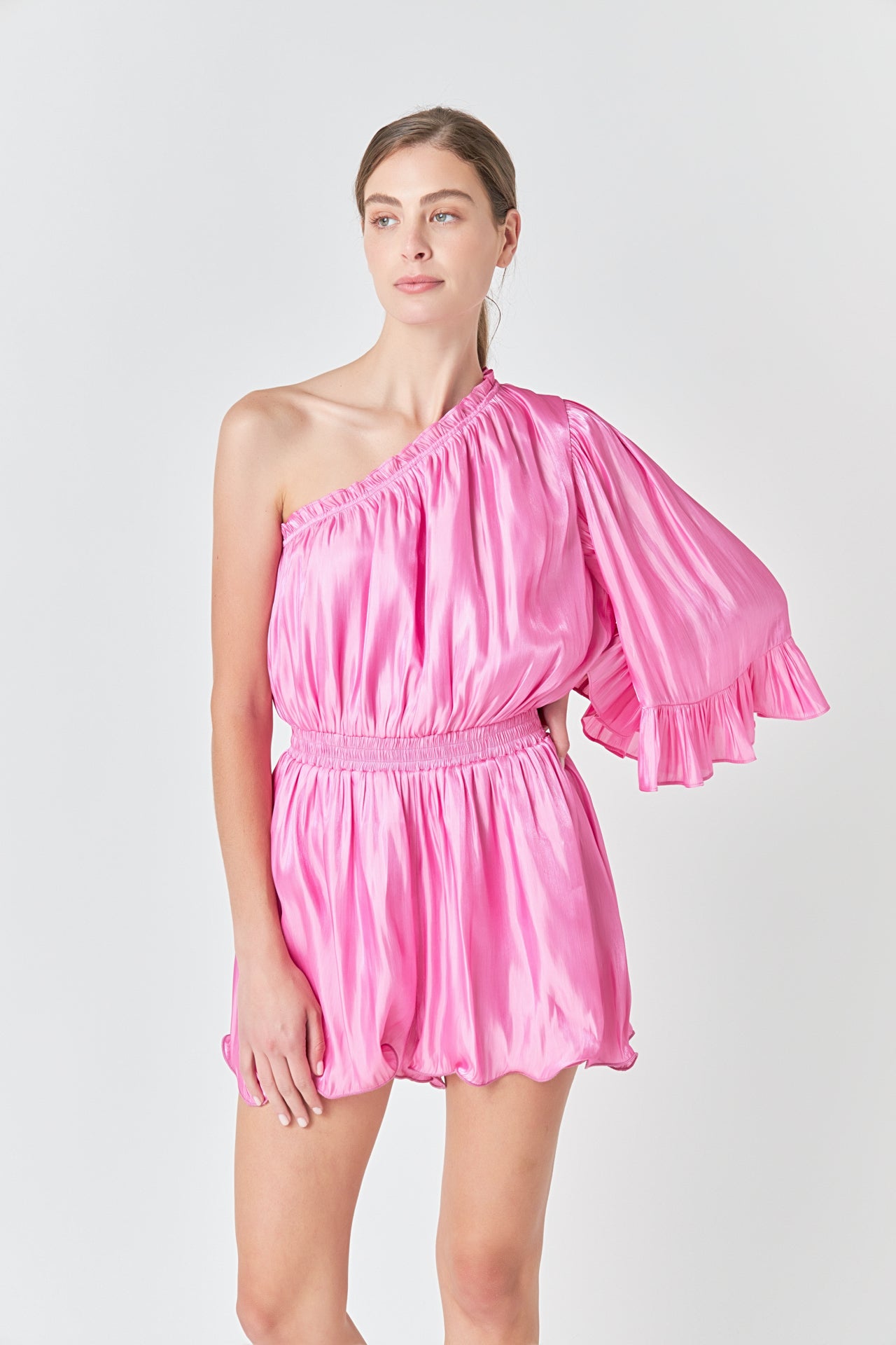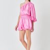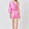 This stylish one shoulder romper is the perfect choice for a night out. Crafted from shiny fabric it features an asymmetric neckline that is ruffled for a flirty touch. The fitted bodice and elastic waistband make it comfortable to wear while the short length will show off your legs.