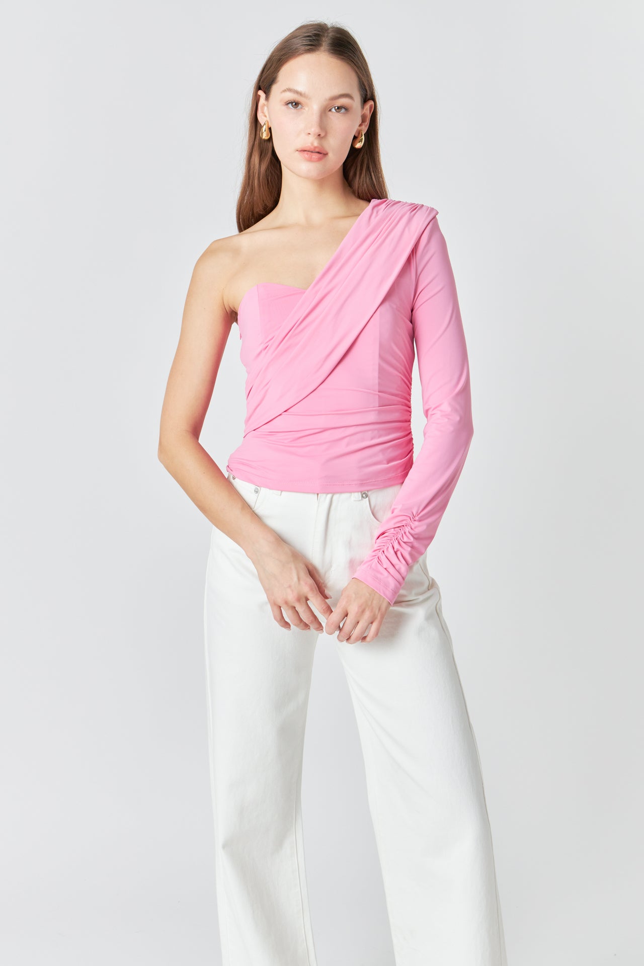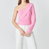 Endless Rose Women’s One Shoulder Shirred Knit Top | Pink