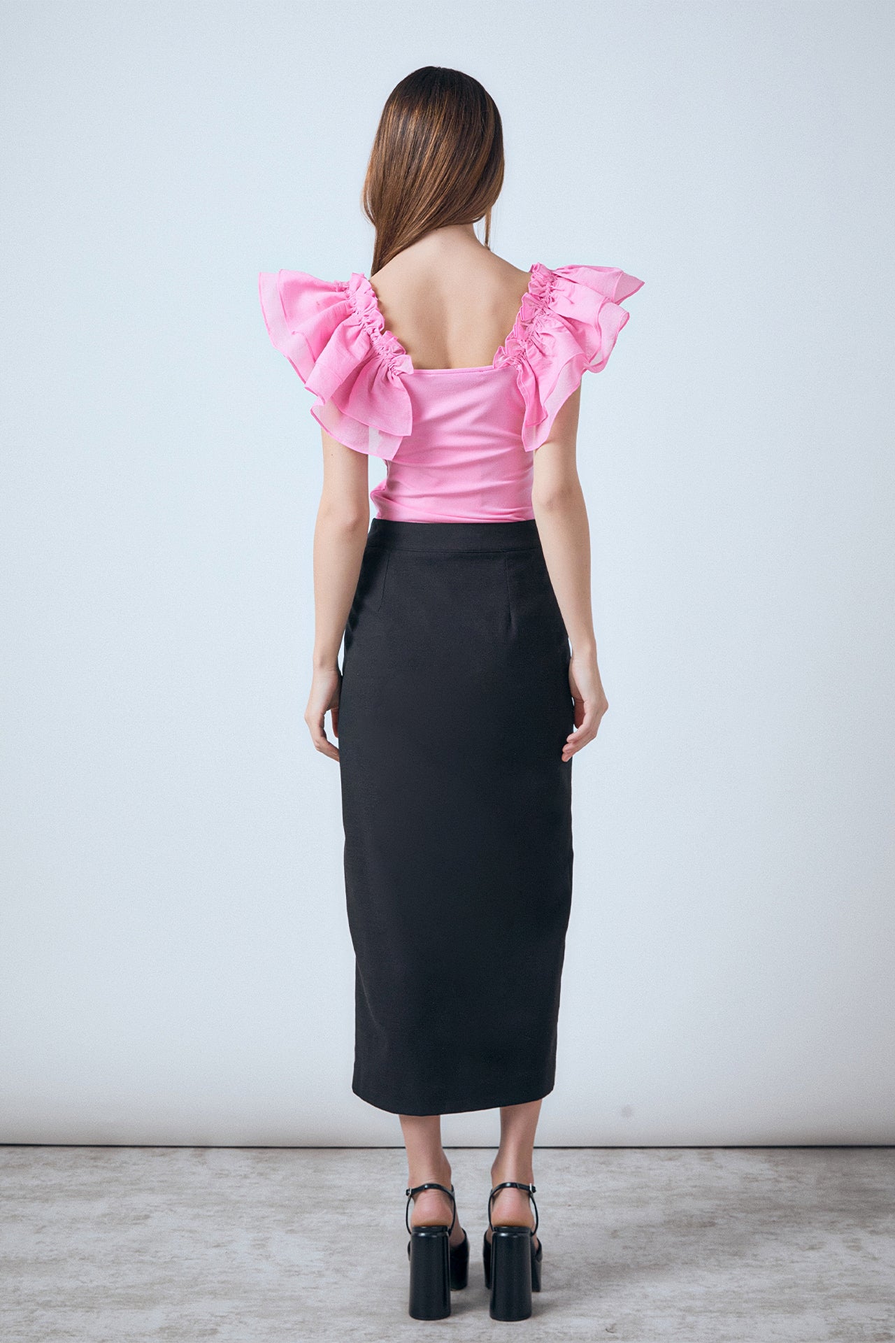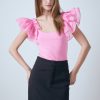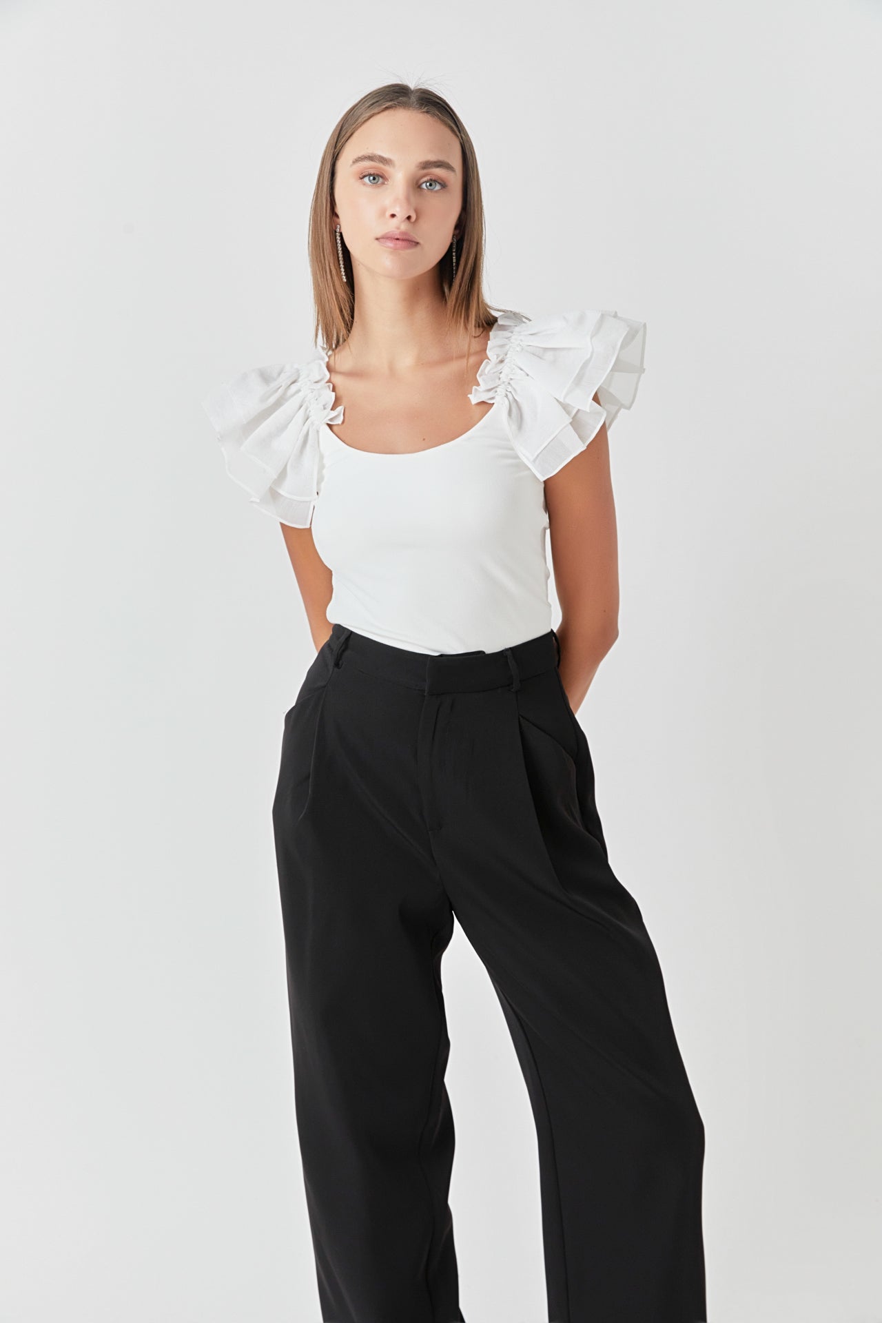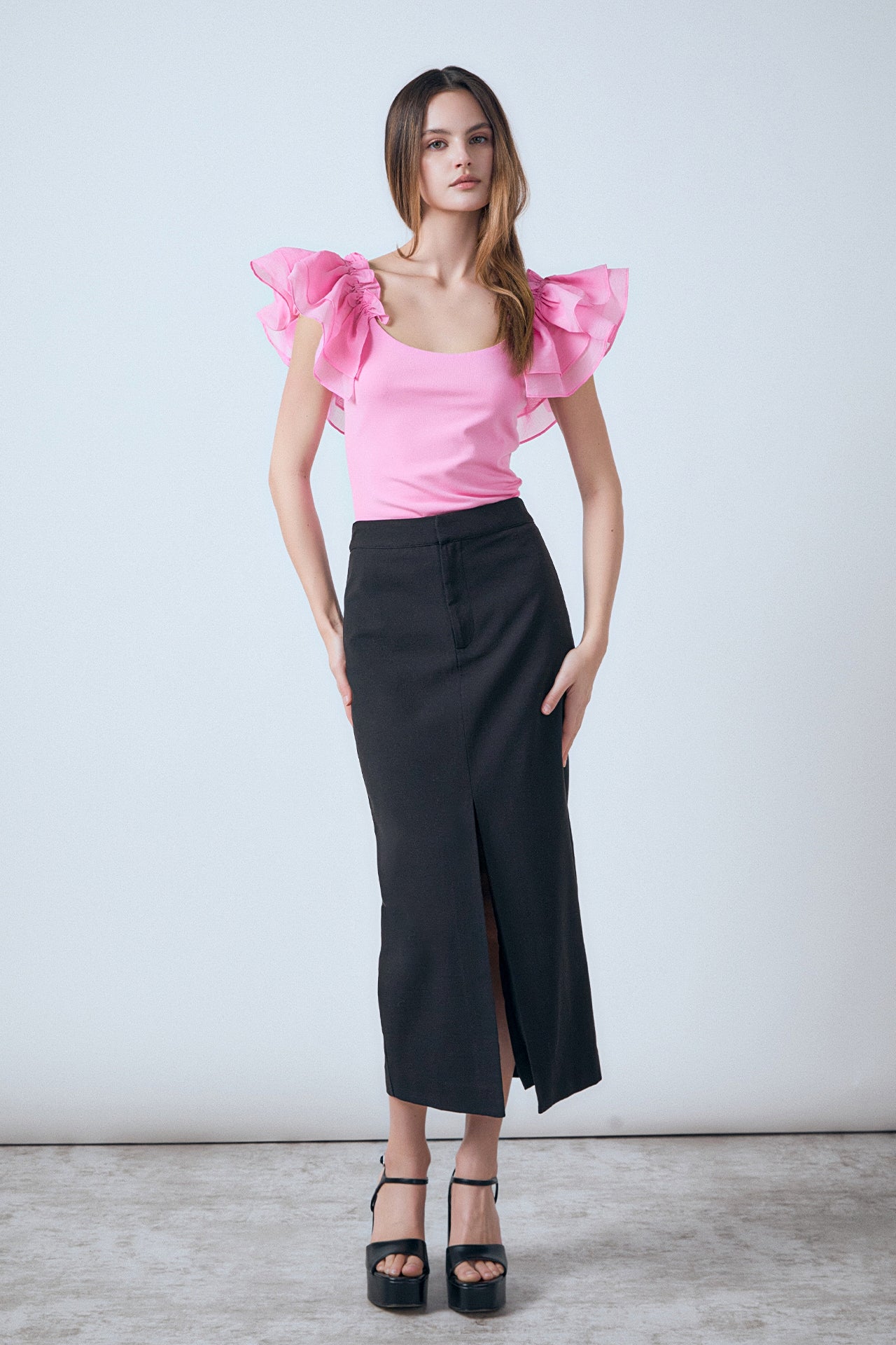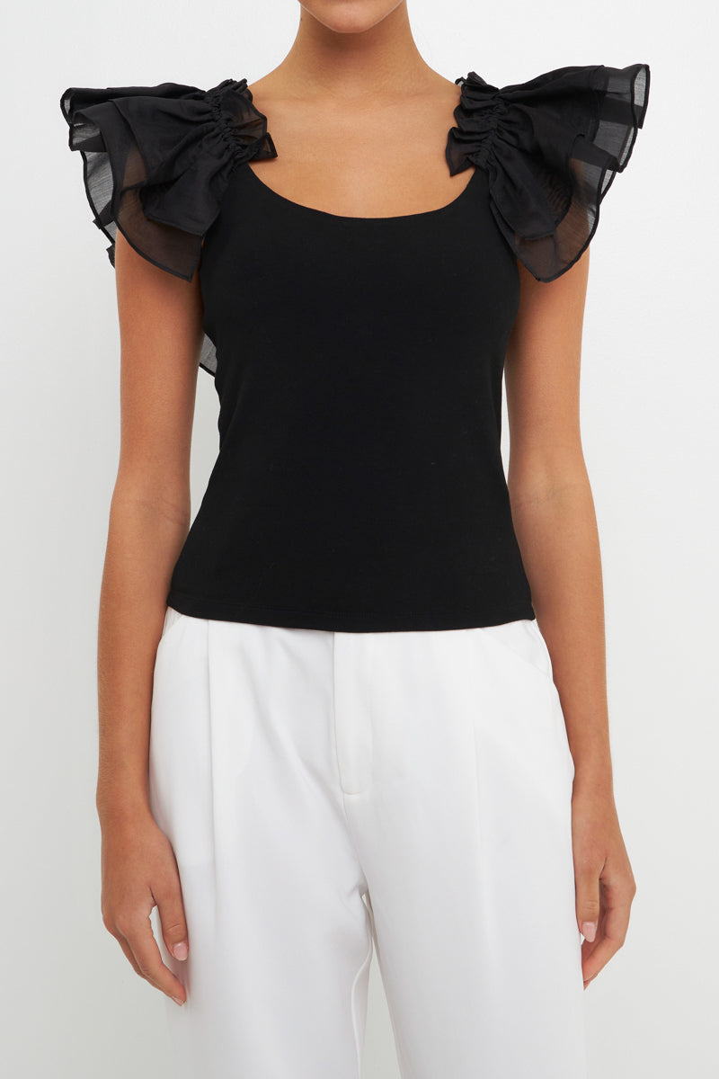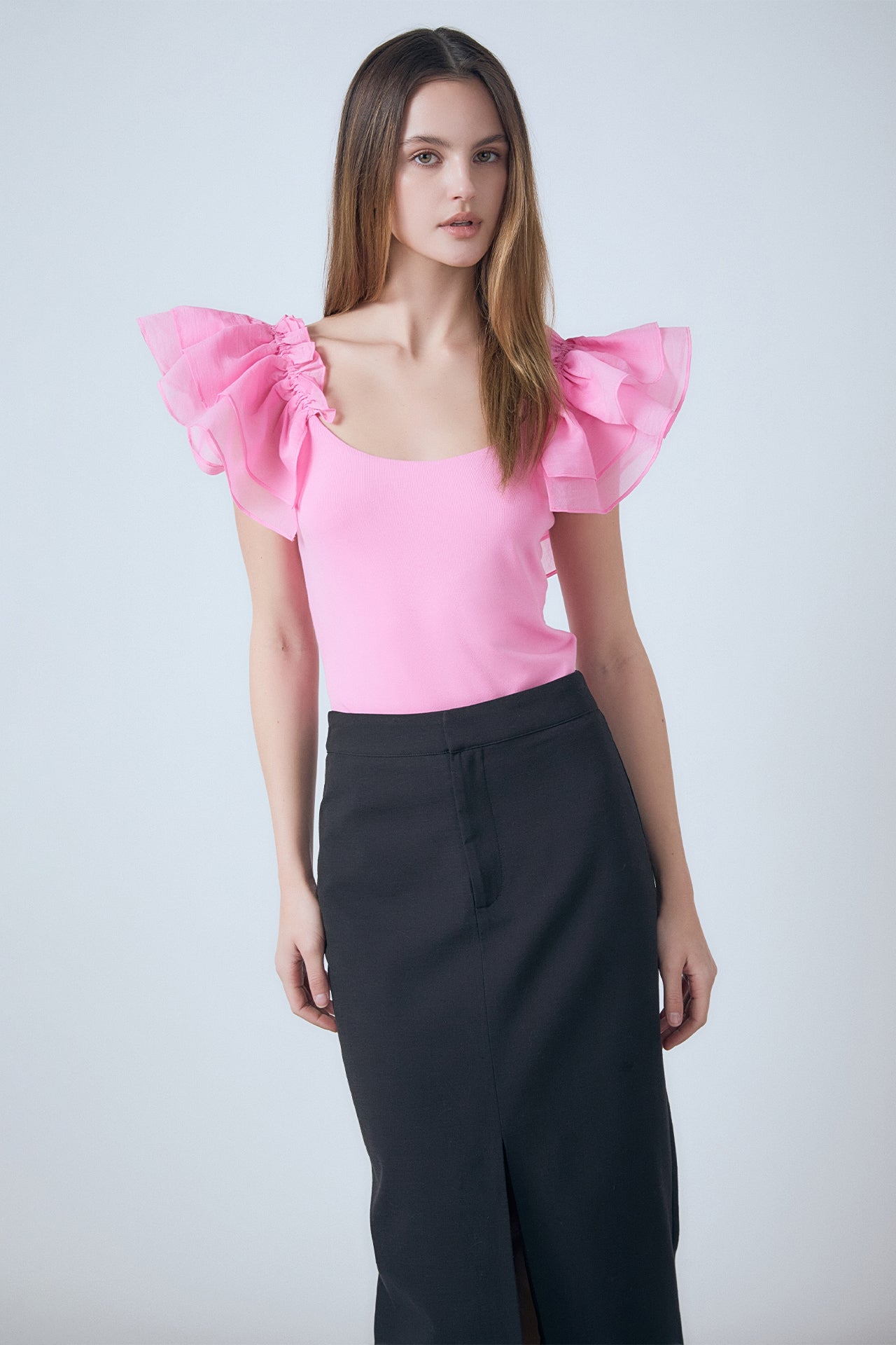 Endless Rose Women’s Organza Ruffle With Knit Top | White|pink|black