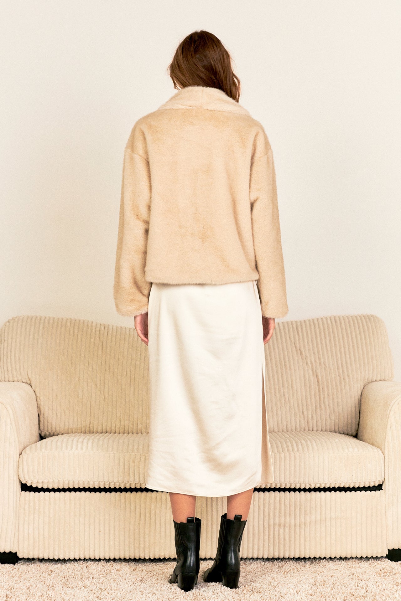 Stay warm and stylish with our must-have Oversized Collar Faux Fur Jacket. The oversized fit is both trendy and comfortable, making it perfect for any occasion. The classic collared design adds a touch of sophistication, while the hidden snap buttons closure ensures a sleek and polished look. With convenient front pockets, you’ll have plenty of space to store your essentials. This jacket is the perfect combination of fashion and functionality. A must-have for your winter wardrobe.