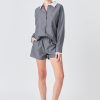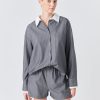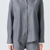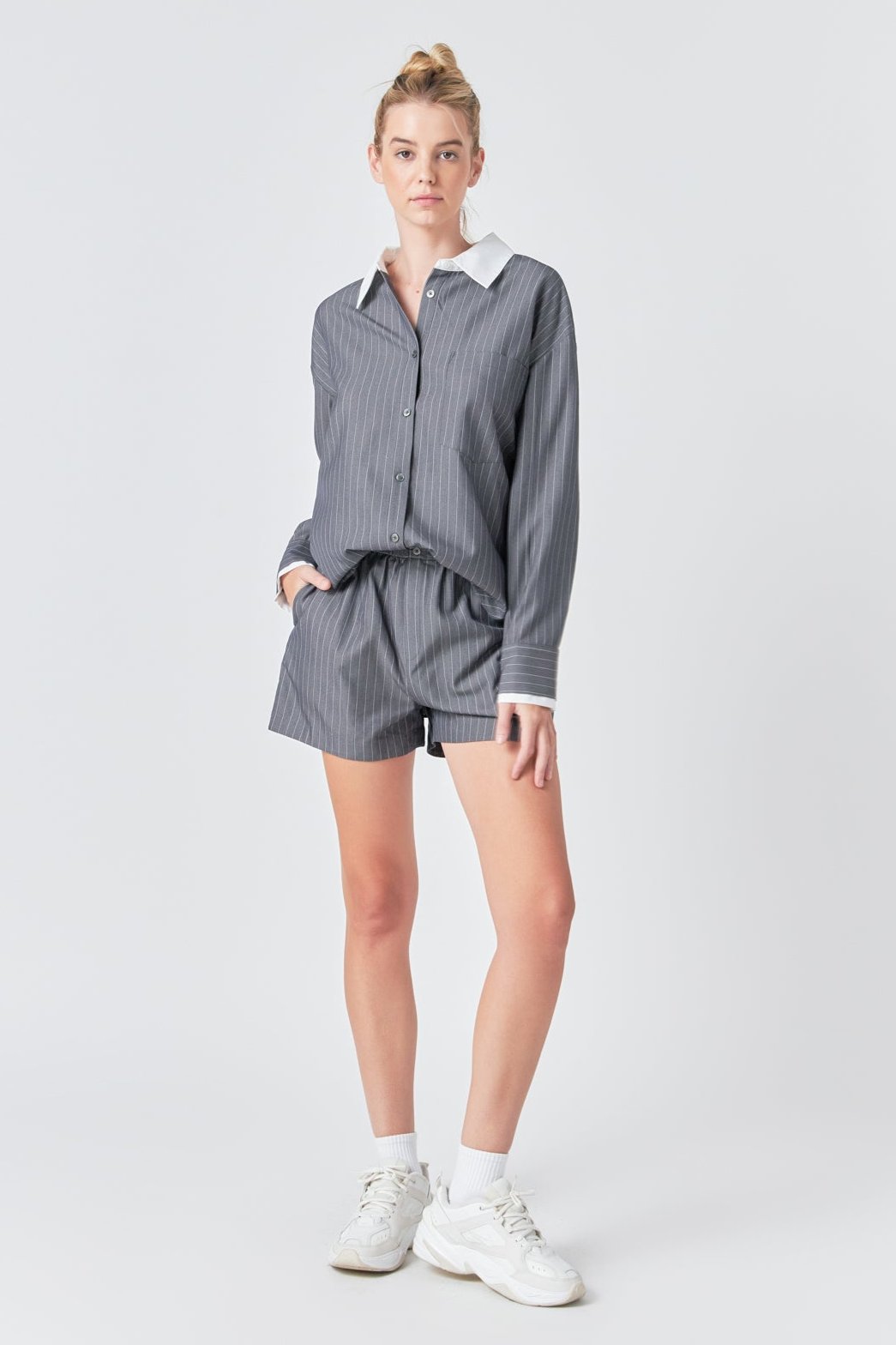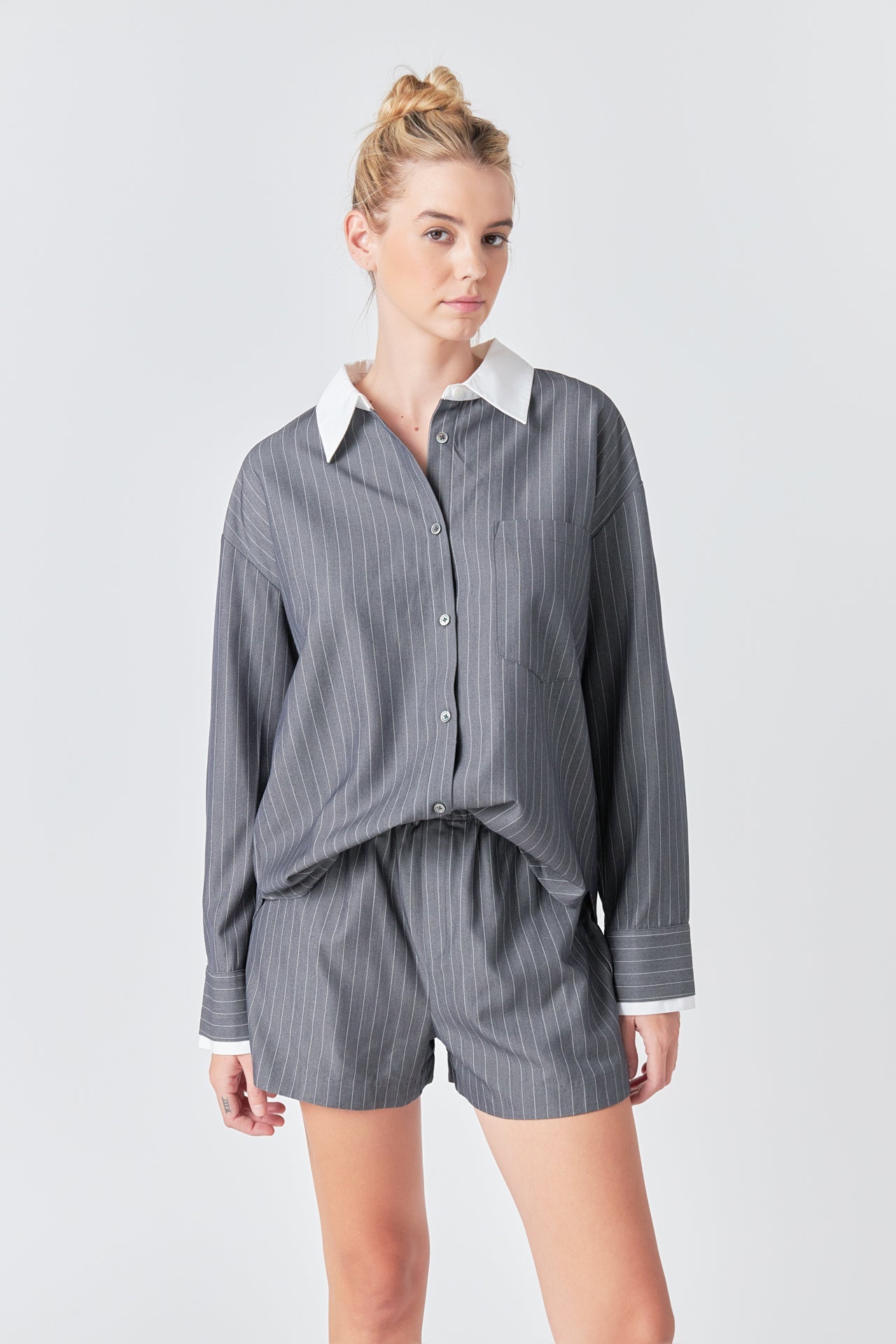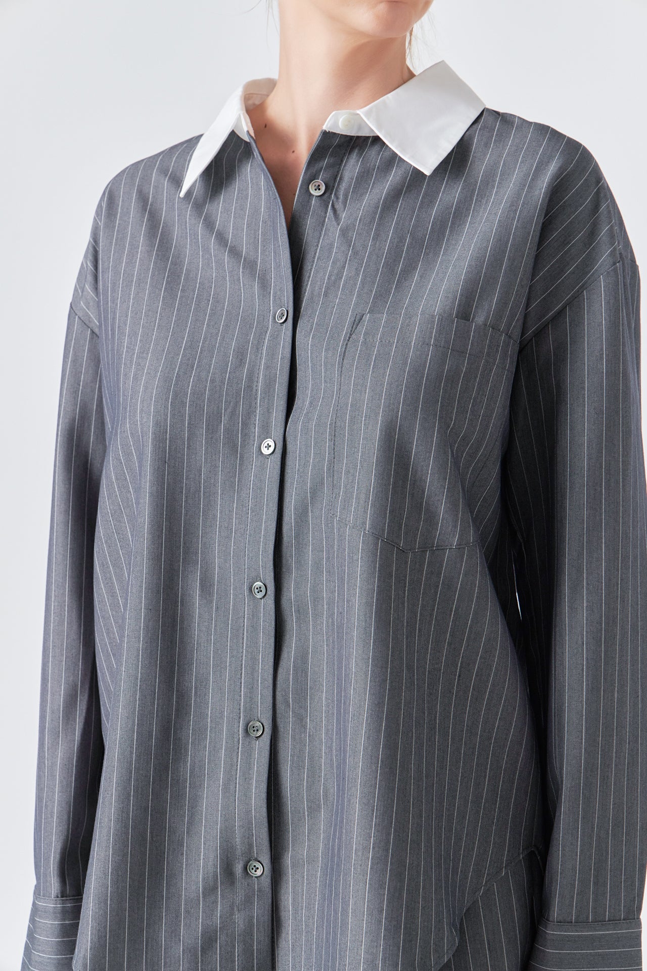 Make a statement with our Oversized Pinstripe Shirt. Featuring a loose, comfortable fit and classic striped pattern, this collared shirt is a must-have for any fashion-forward wardrobe. The front button down design adds a touch of sophistication, making it perfect for both work and play. Wear it tucked into high-waisted jeans for a chic casual look, or pair it with fitted trousers for a more polished ensemble. Upgrade your wardrobe with this versatile and trendy oversized shirt. Shop now and stand out in style!