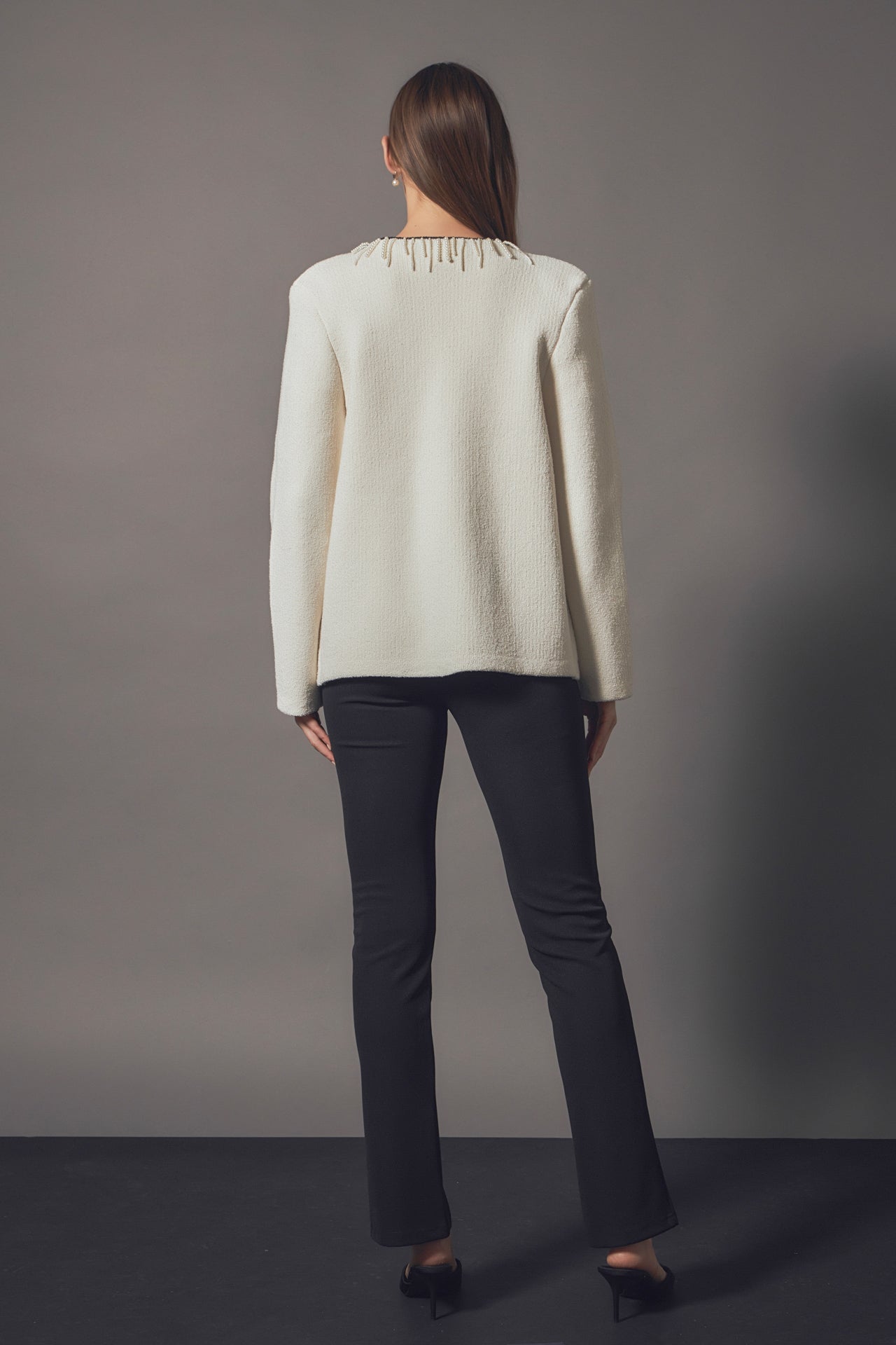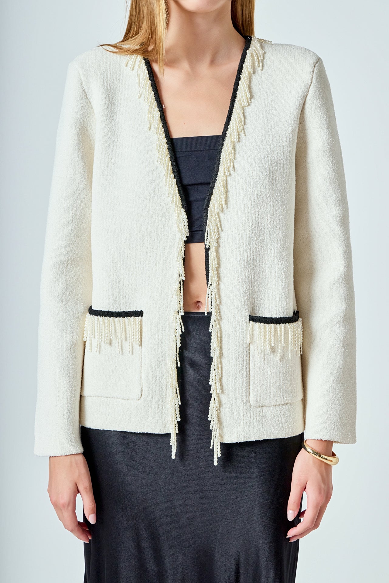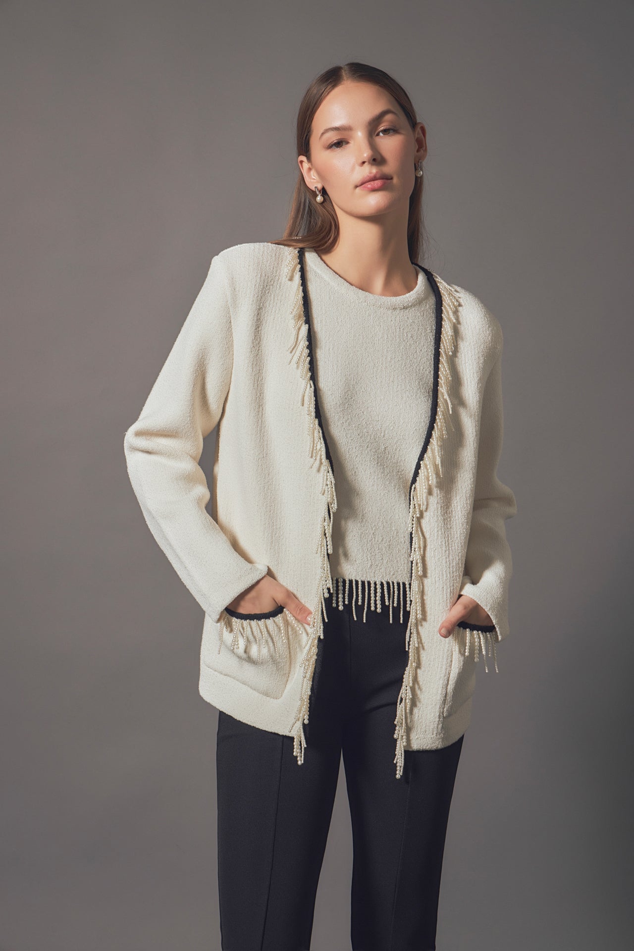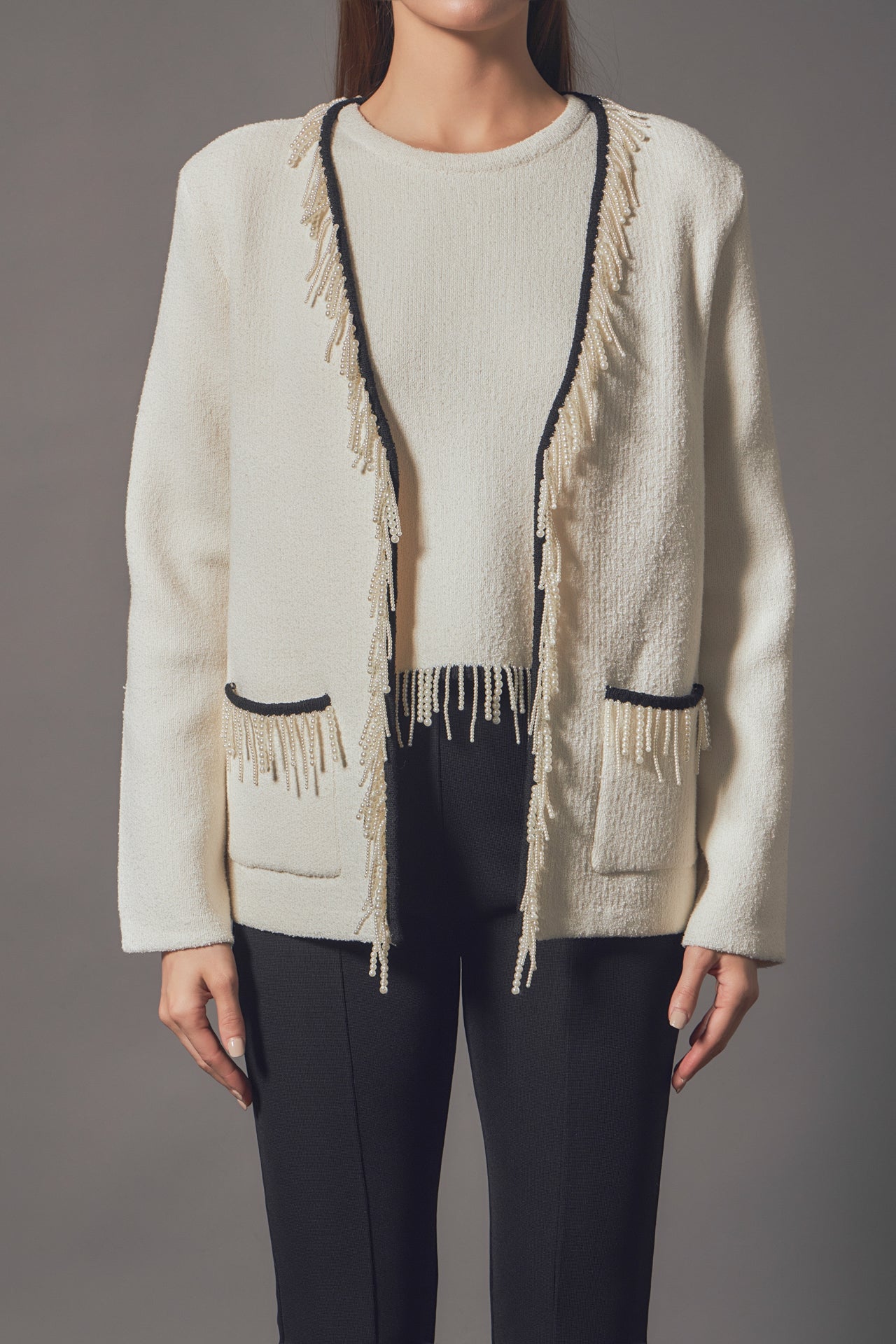 Endless Rose Women’s Pearl Trim Knit Cardigan | Cream