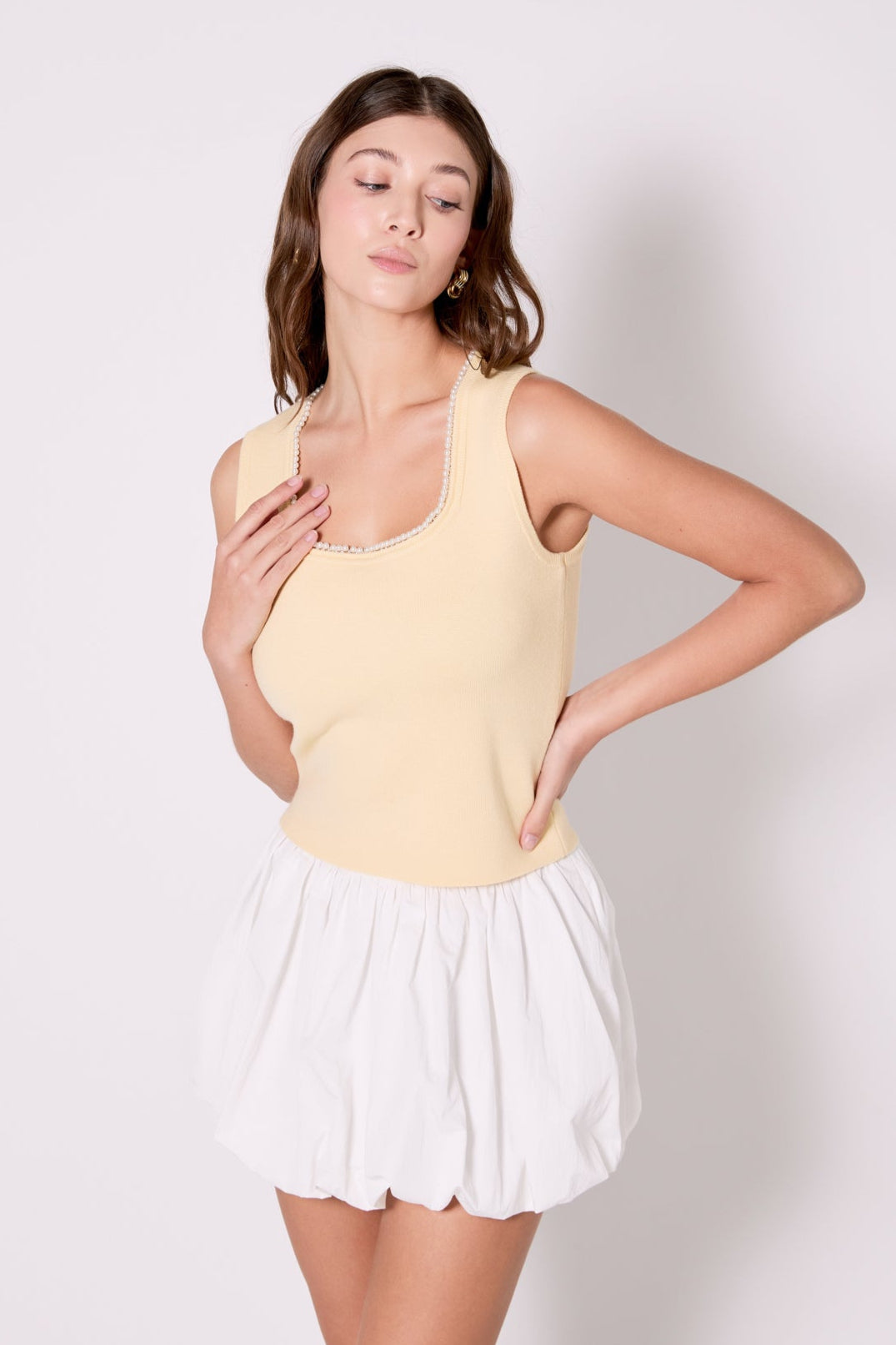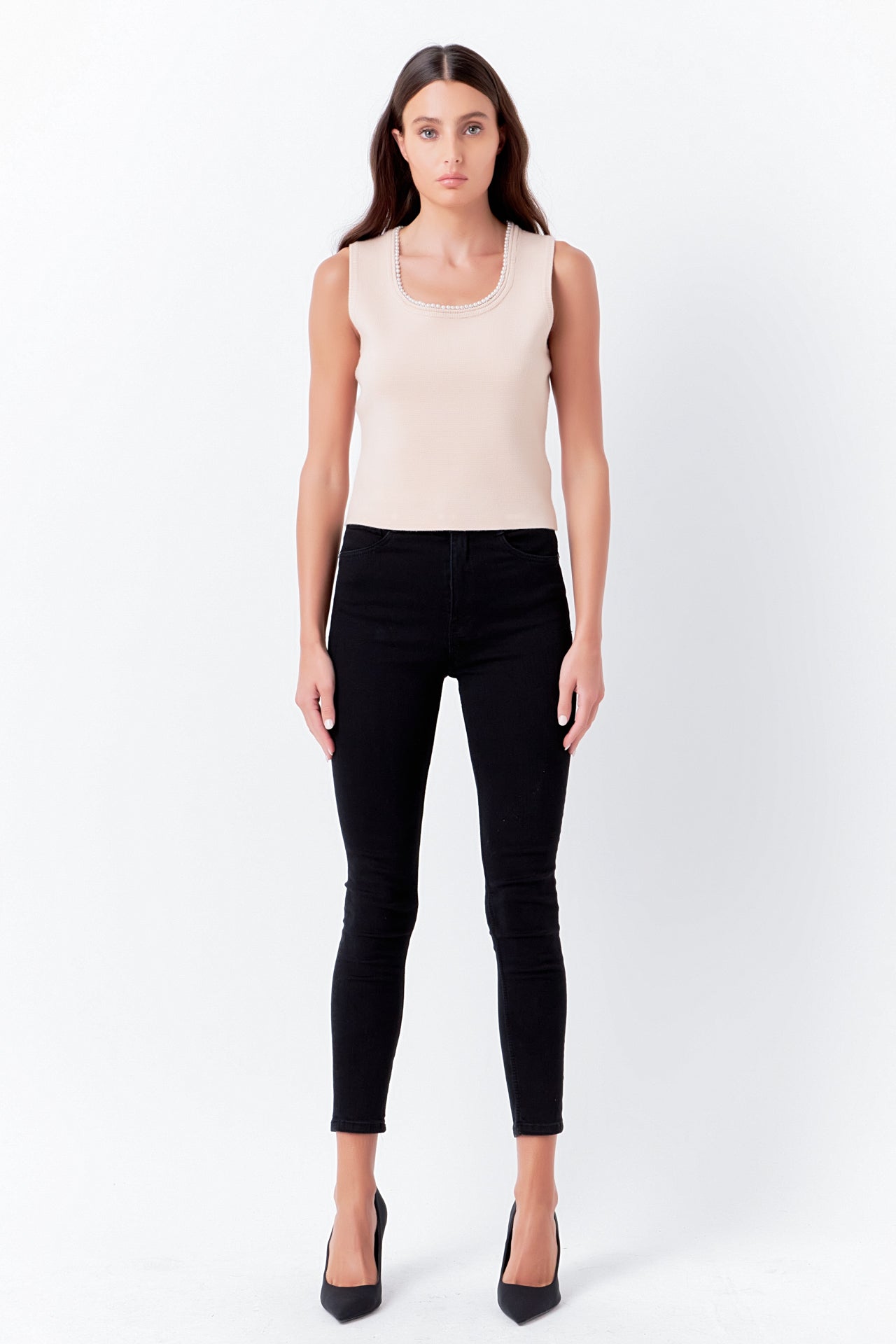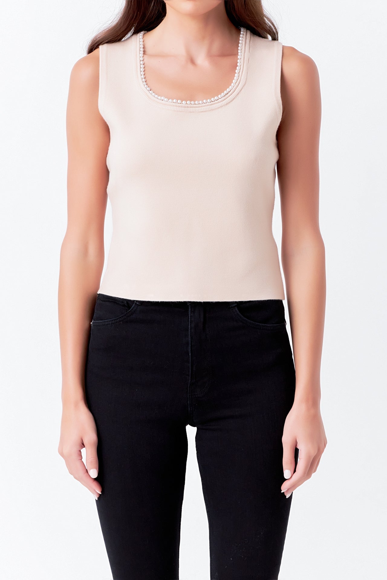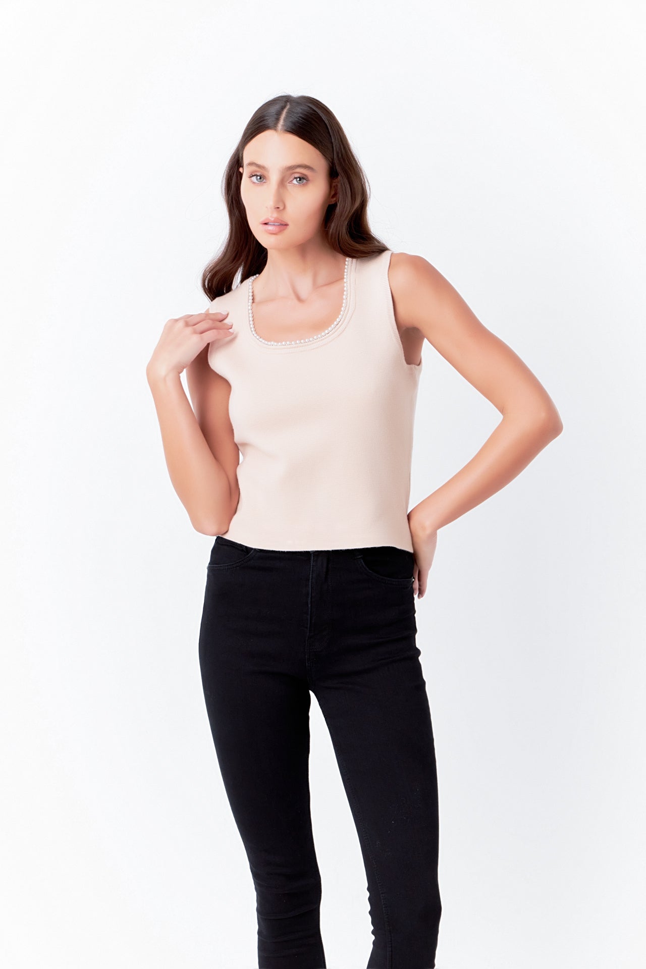 This Pearl Trim Knit Tank Top is a perfect choice for summer. It’s designed with a round neckline sleeveless silhouette and a pearl trim along the neckline for a touch of elegance. This top is made of comfortable and breathable fabric and also perfectly compliments any outfit. It is an easy pull over that you’ll love to flaunt and is sure to become a timeless wardrobe staple. Shop now for this unique high quality tank top.