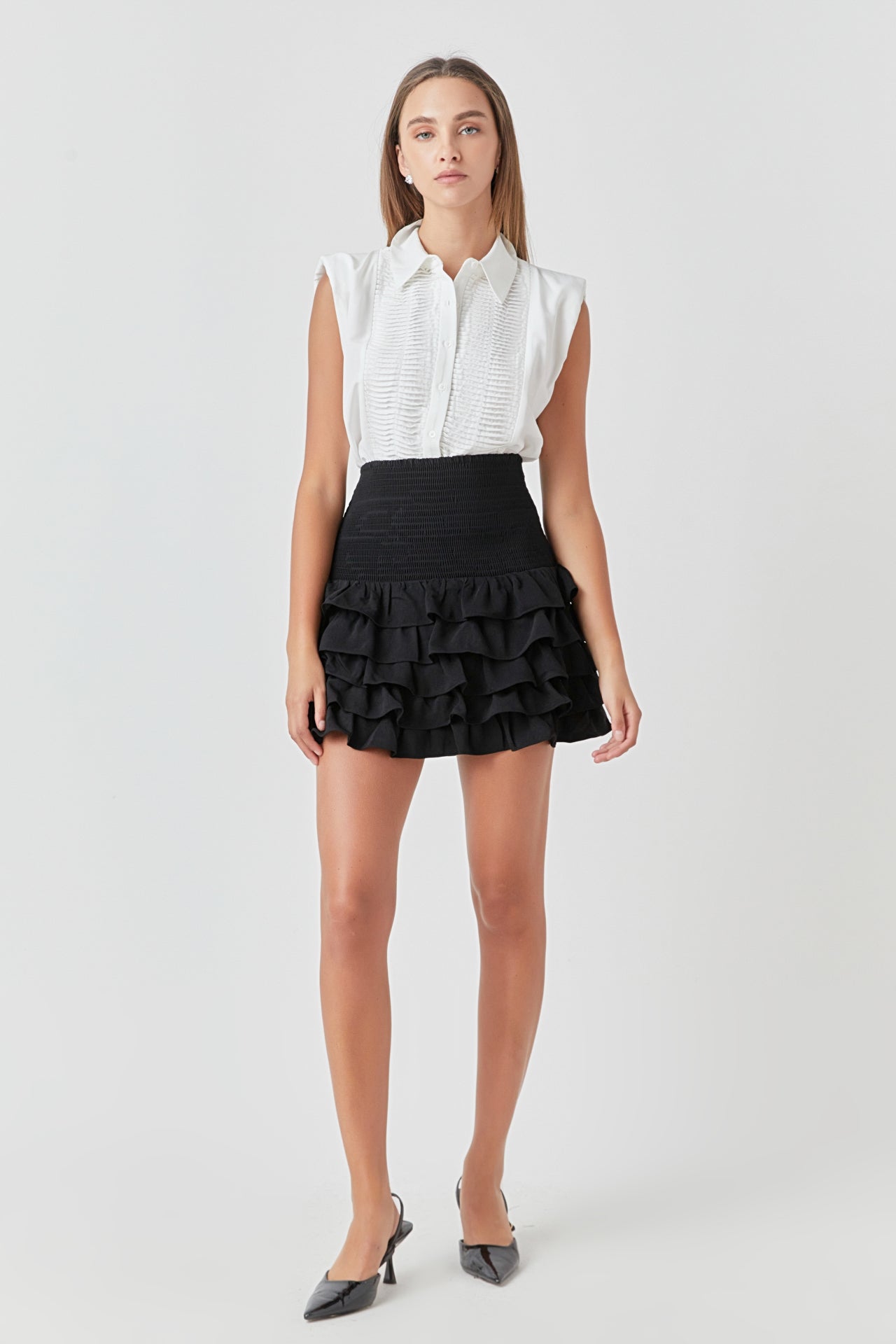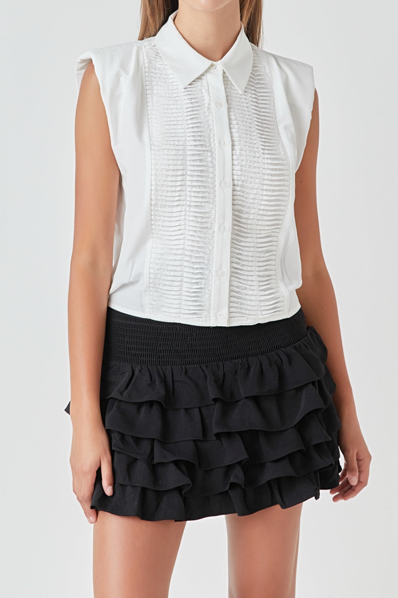 Endless Rose Women’s Pintuck Details Sleeveless Blouse | Red|white