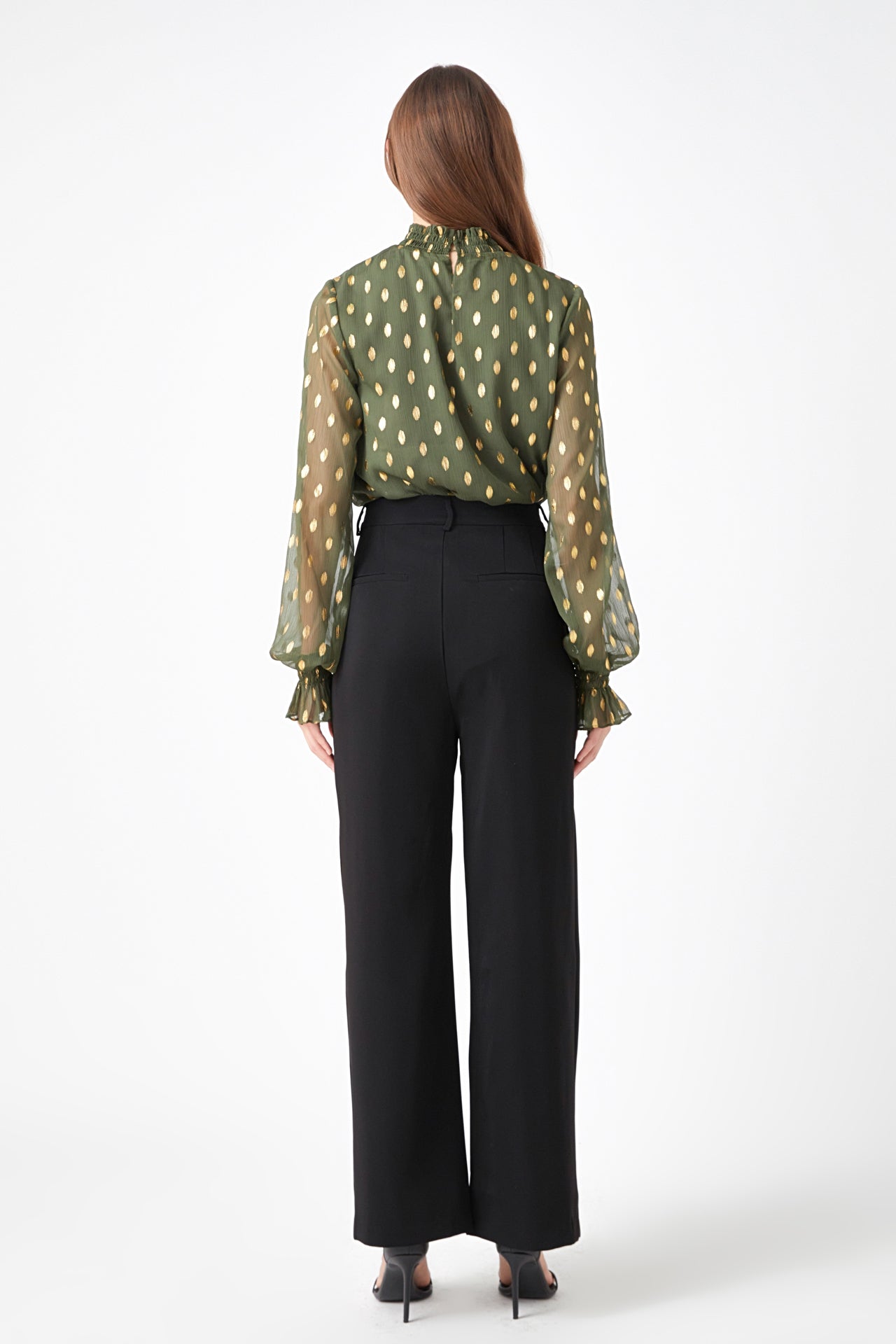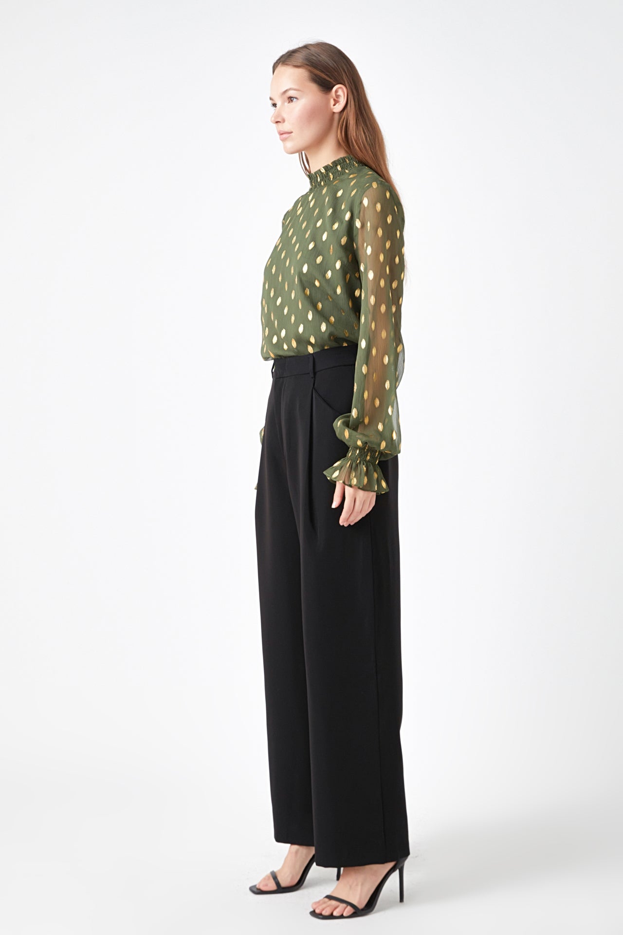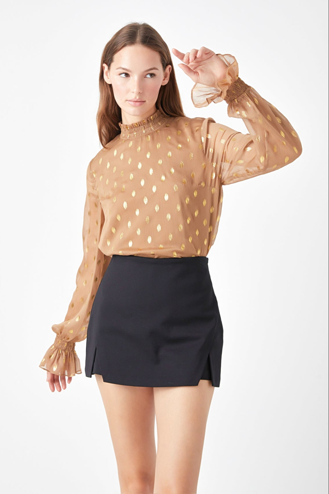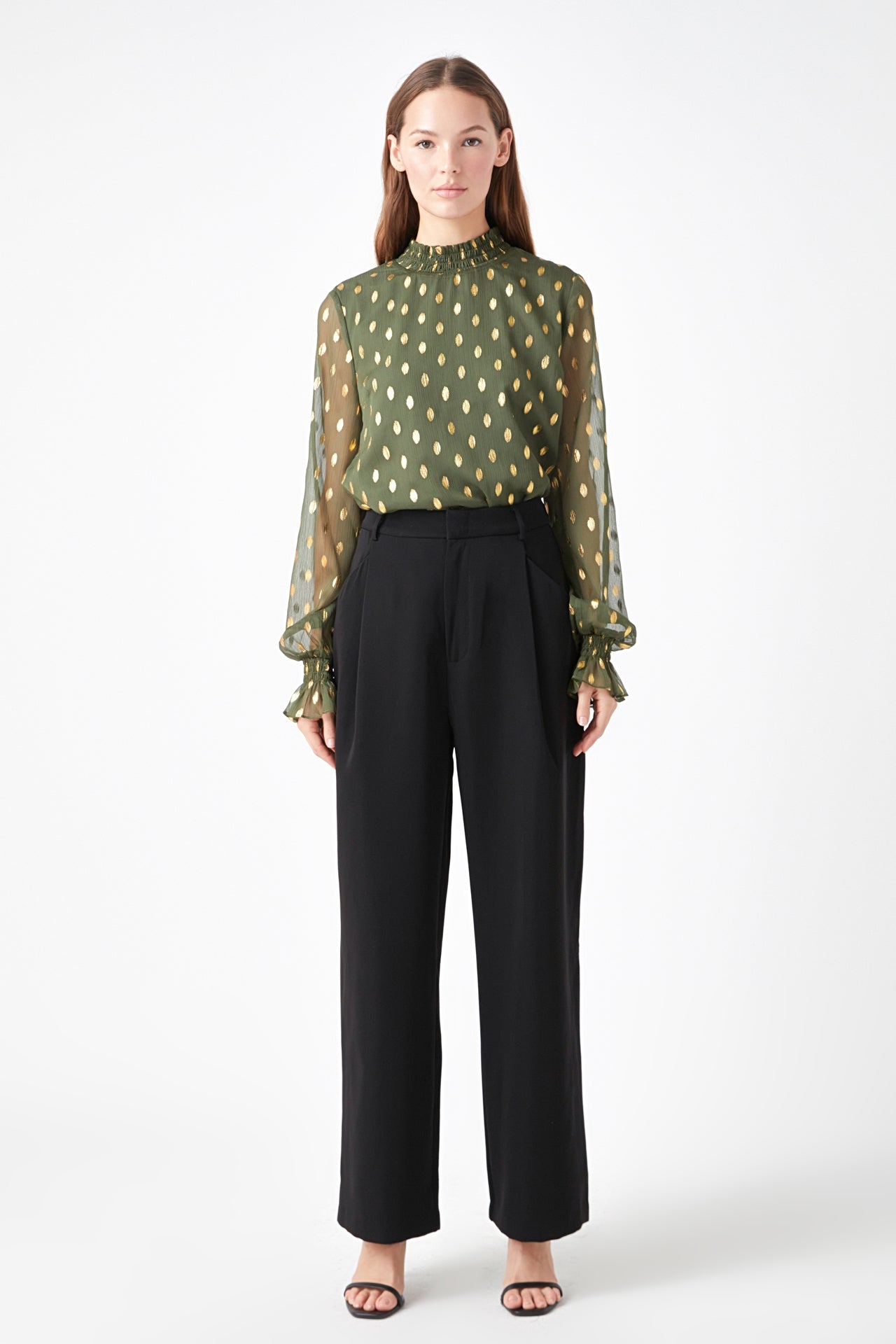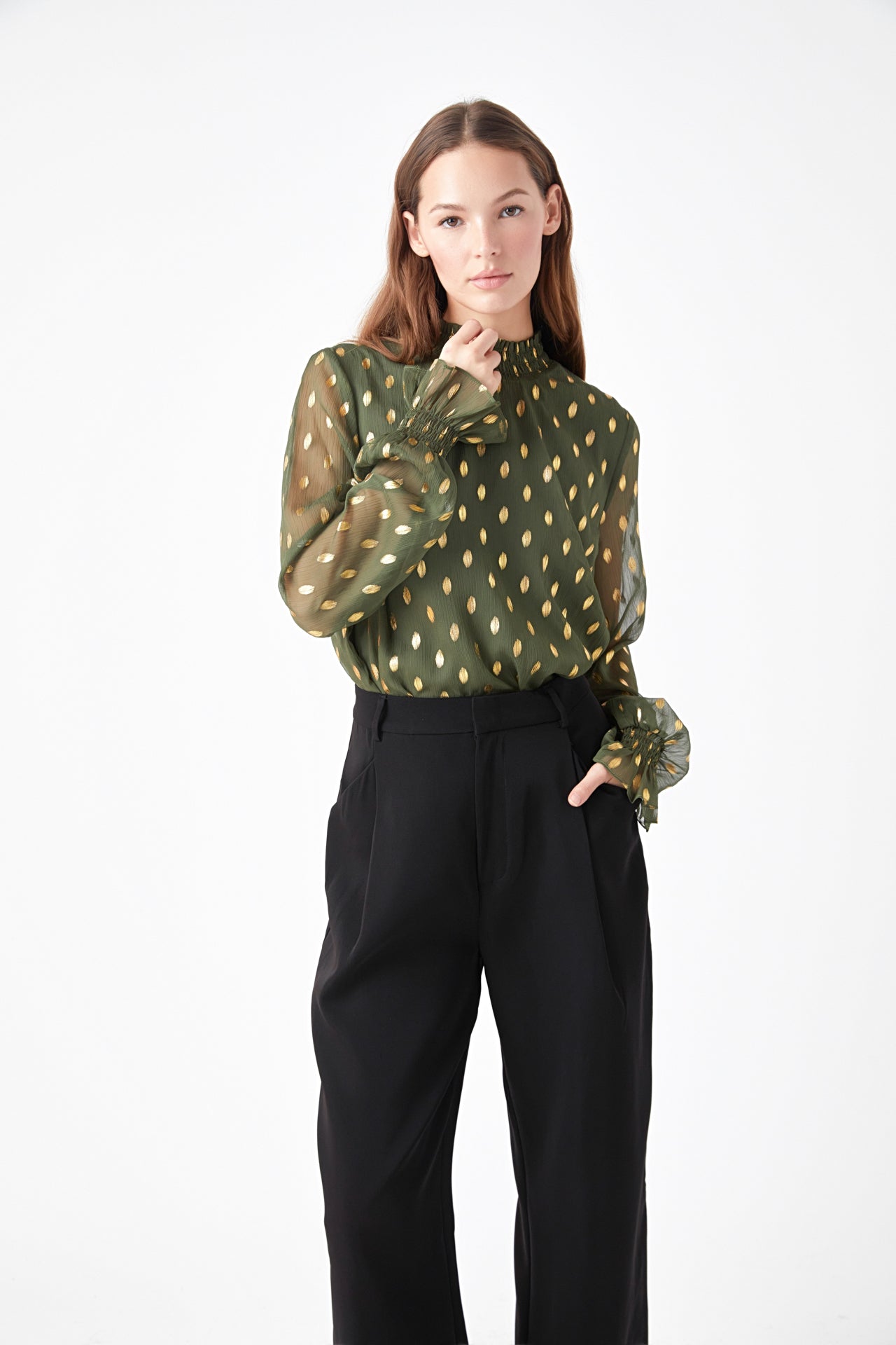 Endless Rose Women’s Polka Dot Chiffon Blouse | Green|tan|mauve