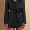 Look stunning in the Corsage Tie Romper. This unique romper is designed with blazer-style lapels a tailored fit and long sleeves. Show off your fashion sense with these chic shorts that will give you an unforgettable look. They emphasize the perfect curves while flaunting your beautiful figure making you the center of attention. Get ready to stand out with our Corsage Tie Romper.