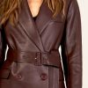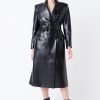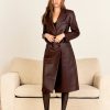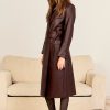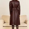 Endless Rose Women’s Premium Faux Leather Trench Coat | Burgundy|black