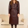 Endless Rose Women’s Premium Faux Leather Trench Coat | Burgundy|black
