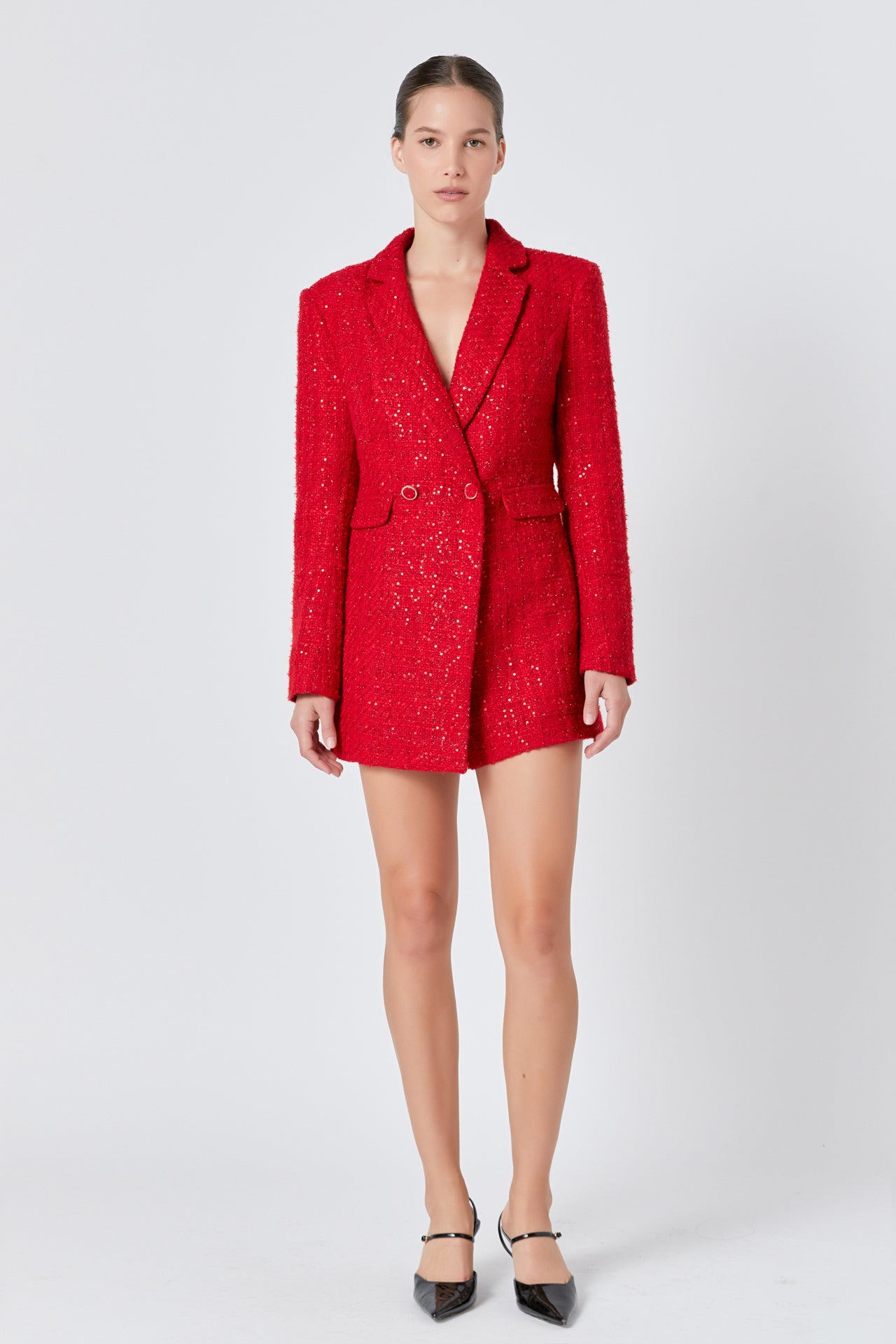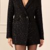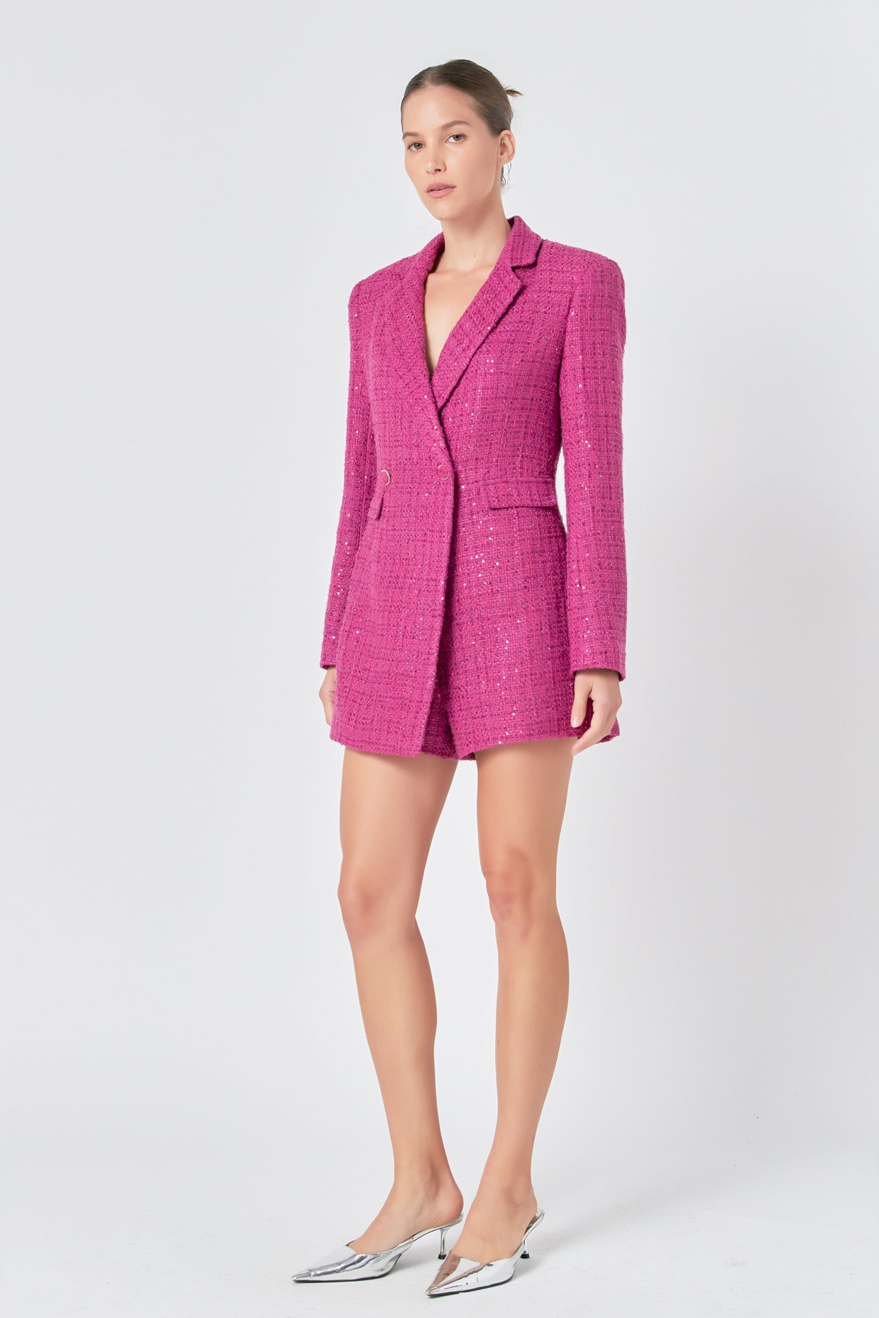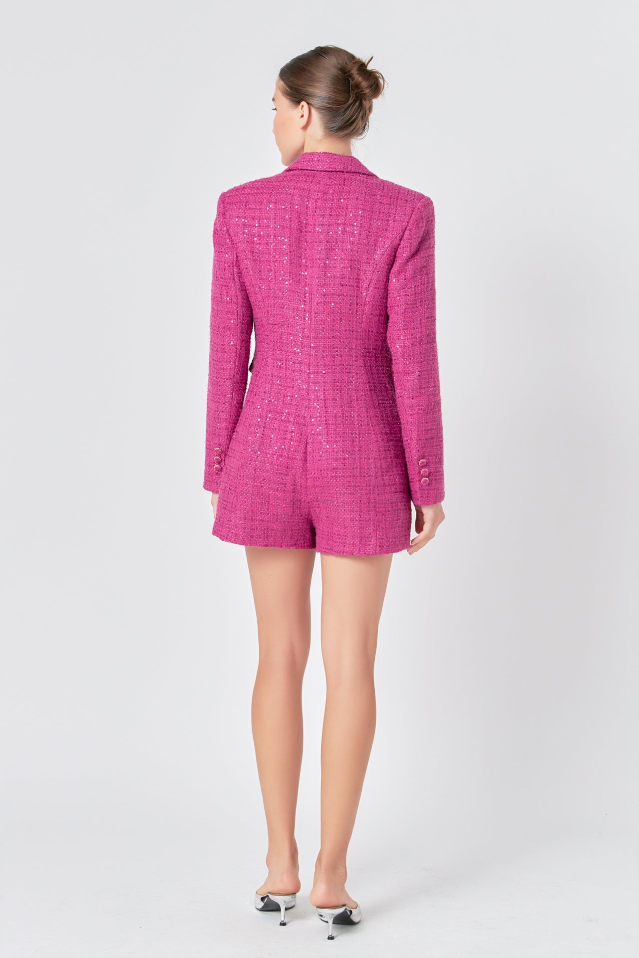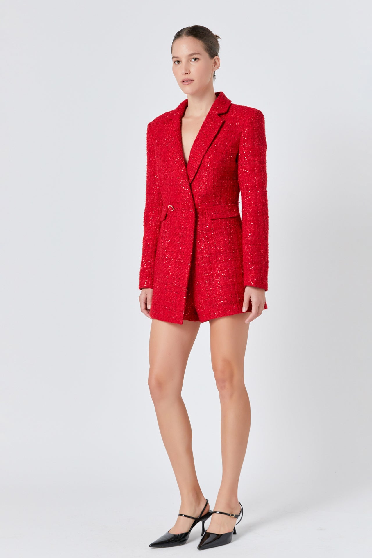 Endless Rose Women’s Premium Sequin Tweed Blazer Romper | Black|red|orchid|tan|teal|lilac
