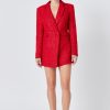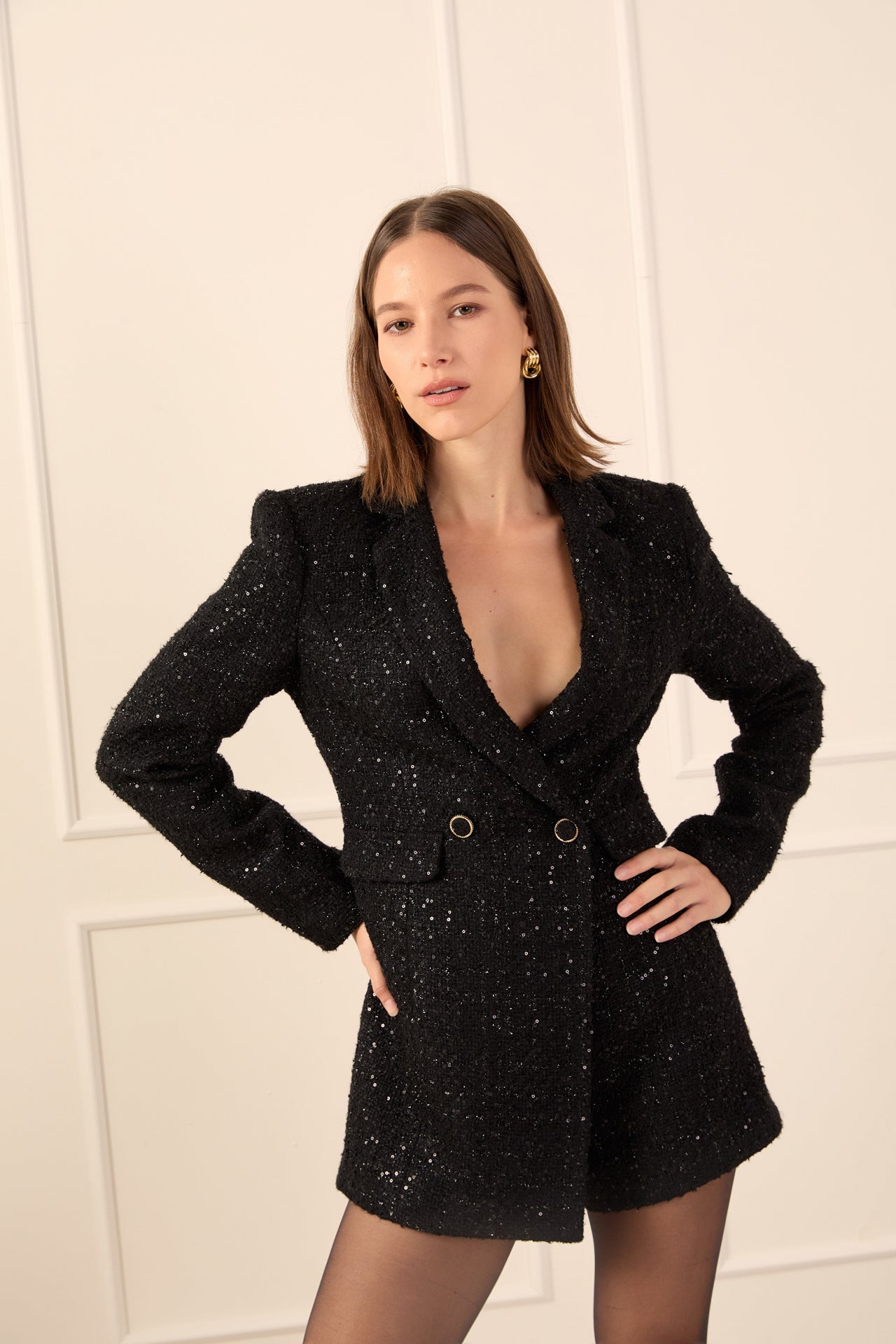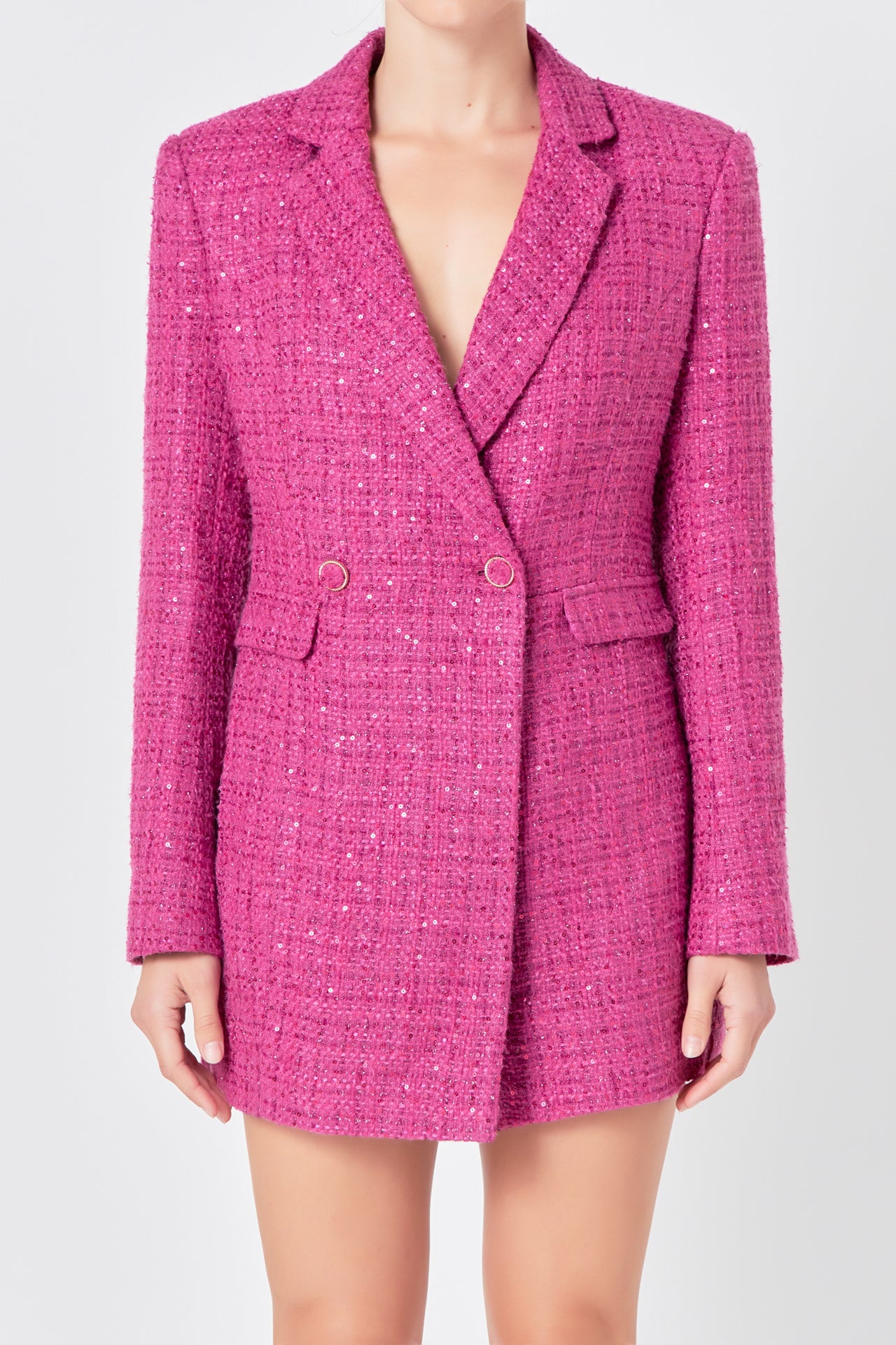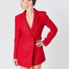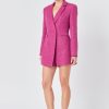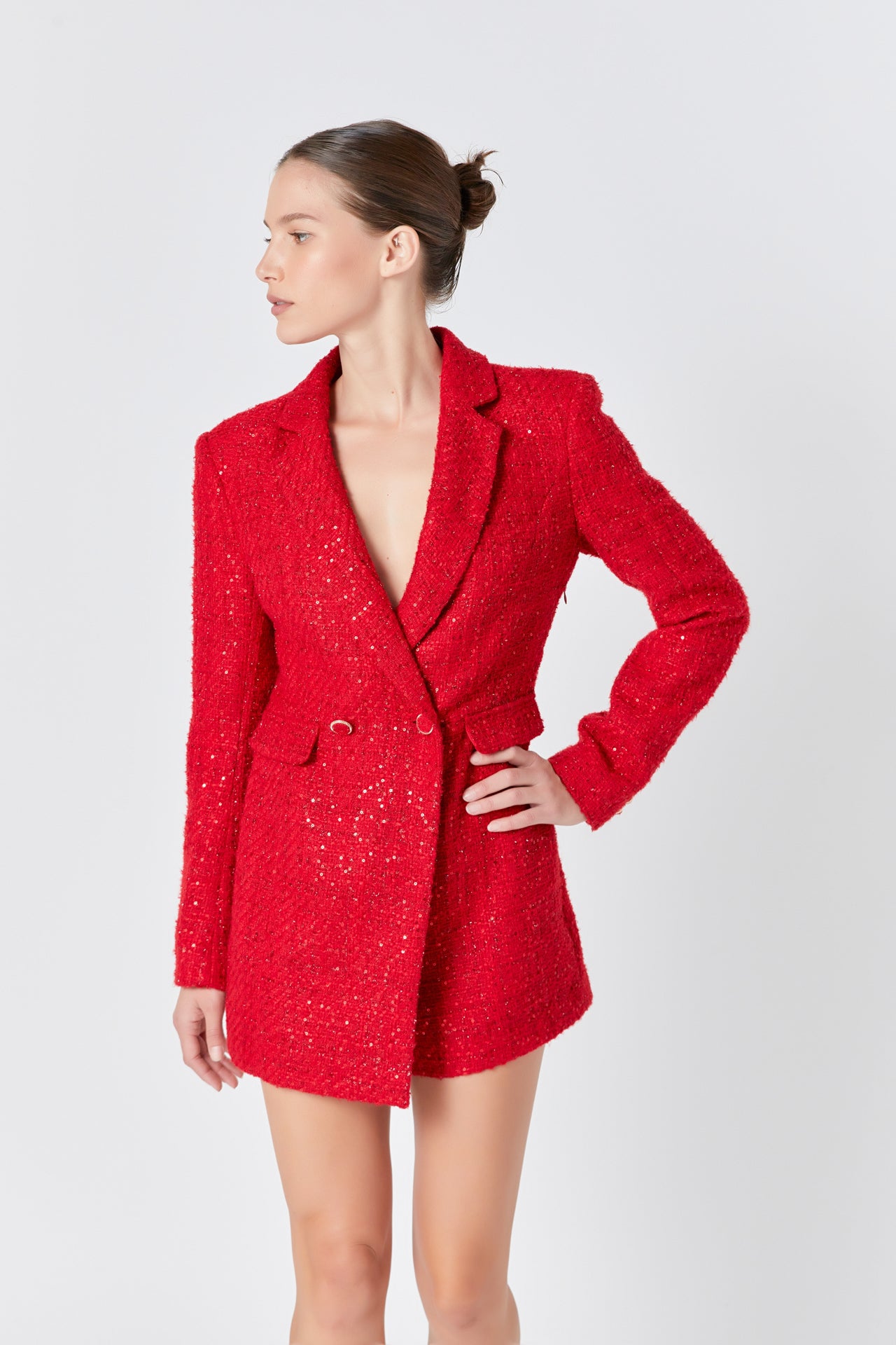 Endless Rose Women’s Premium Sequin Tweed Blazer Romper | Black|red|orchid|tan|teal|lilac