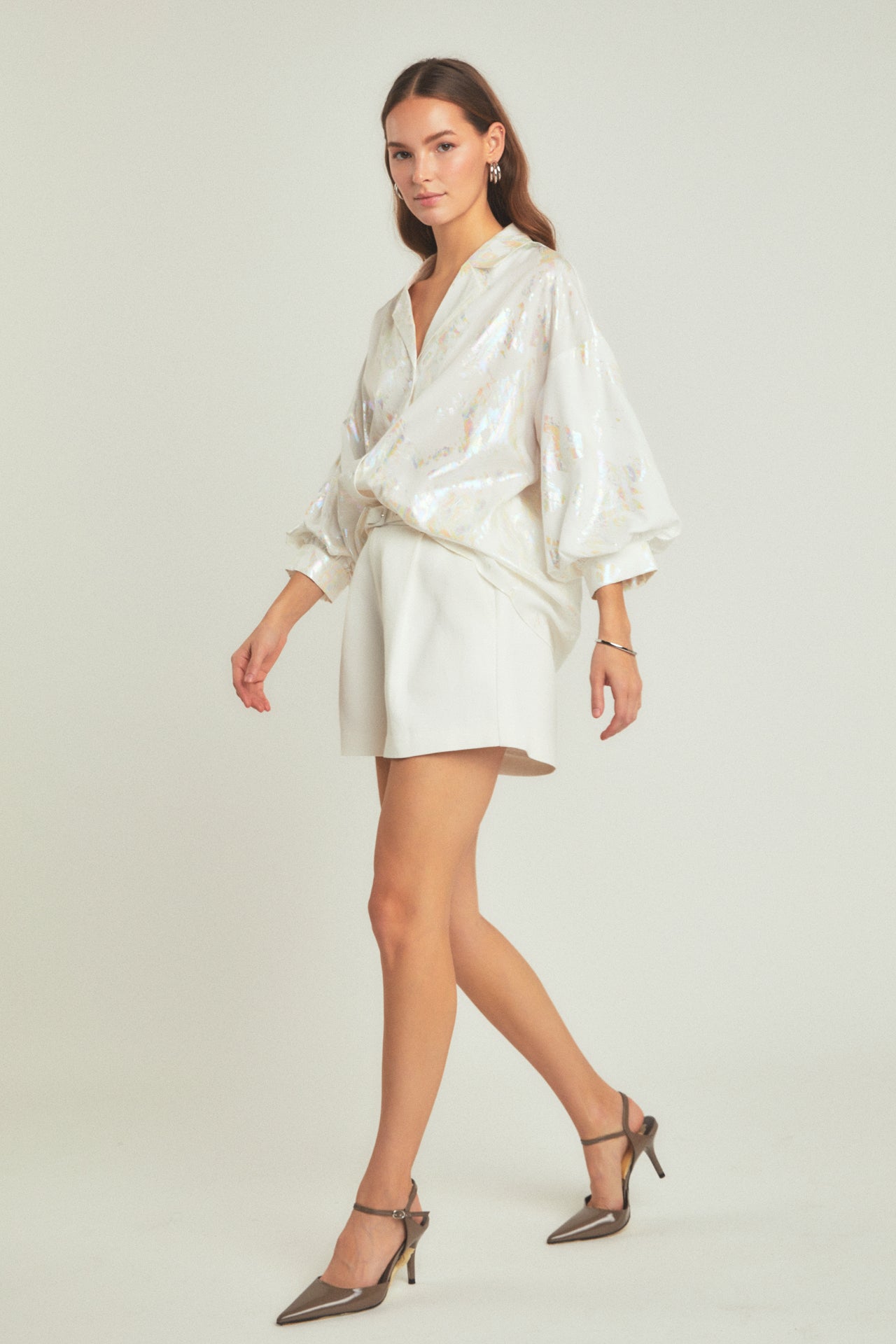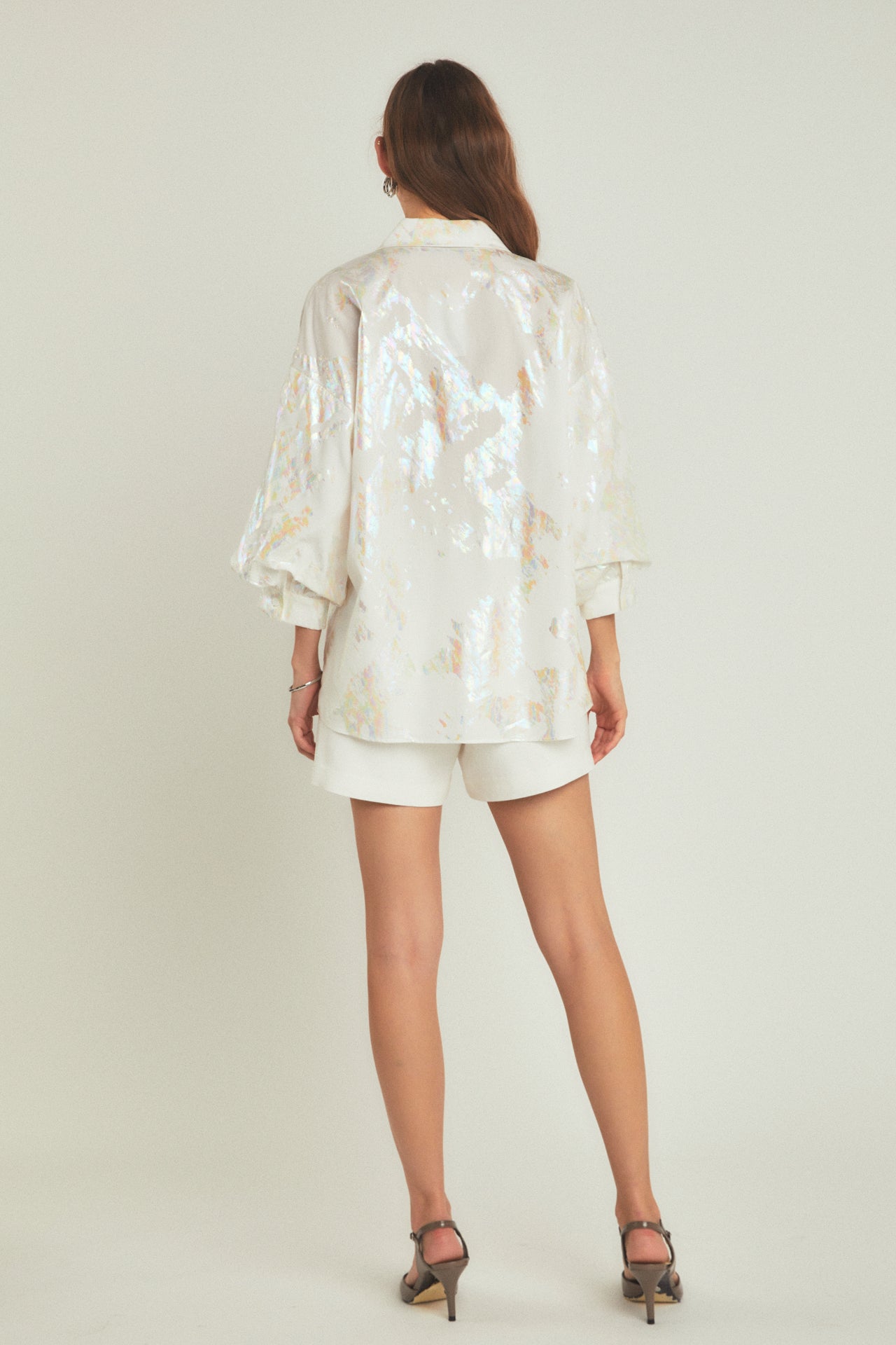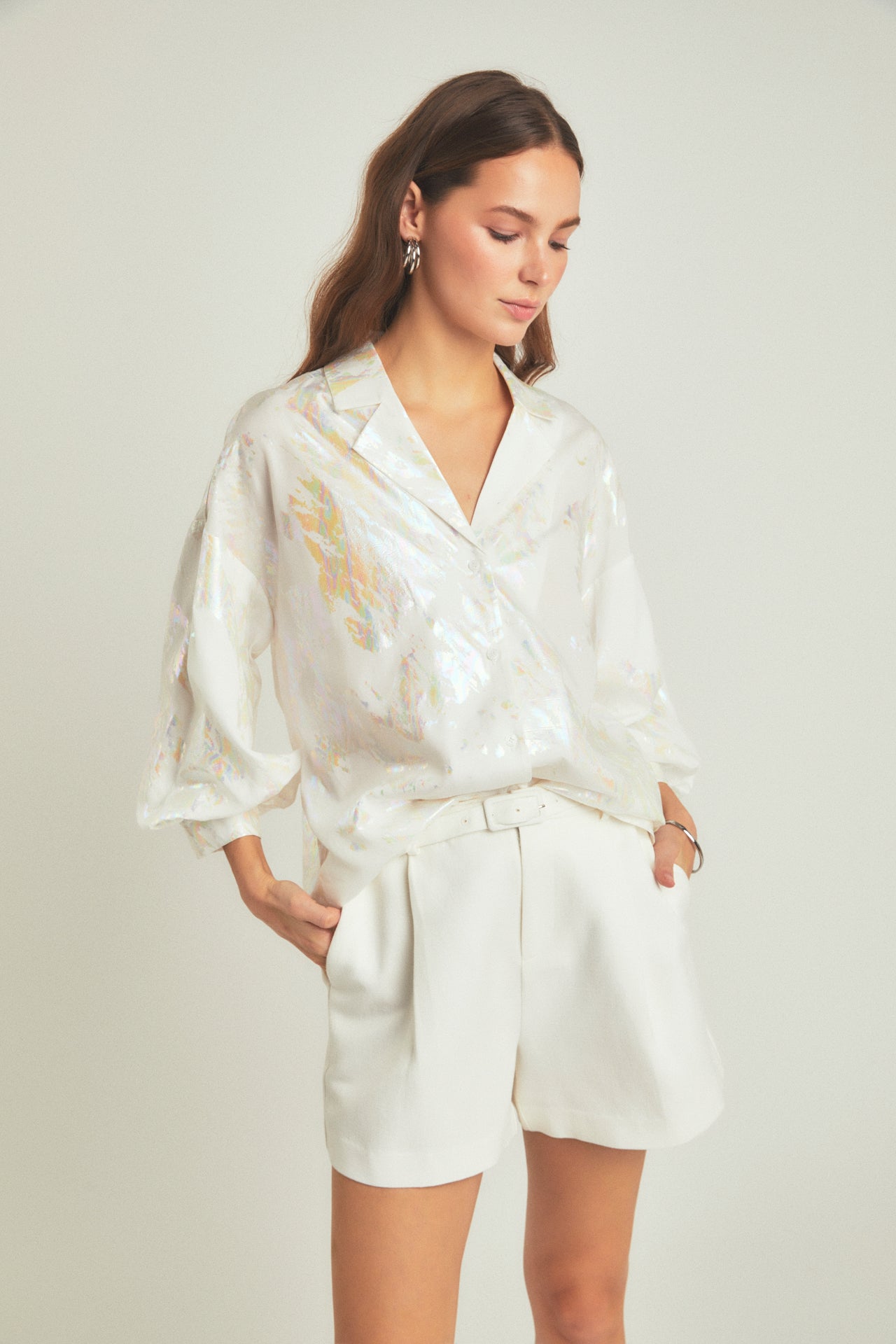 Endless Rose Women’s Print Foil Collared Shirt | White