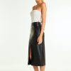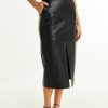 Endless Rose Women’s Pu Front Slit Midi Skirt | Black