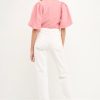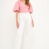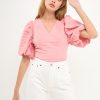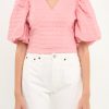 This Puff Sleeve Check Jacquard Top is perfect for a casual day out. The pretty pink color and puff sleeves make it feminine and fun, while the check pattern adds a touch of sophistication. It’s crop top style makes it the perfect choice for hot summer days.