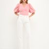 This Puff Sleeve Check Jacquard Top is perfect for a casual day out. The pretty pink color and puff sleeves make it feminine and fun, while the check pattern adds a touch of sophistication. It’s crop top style makes it the perfect choice for hot summer days.