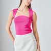 Add some comfort to your wardrobe with this ribbed knit sleeveless top. The fitted shape and arch neckline will bring an effortlessly stylish vibe to the look while the ribbed knit fabric is soft and comfortable against the skin. Wear it alone or layer it up with a denim jacket. This top is perfect for warm days and crisp nights alike.