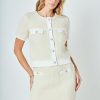 Endless Rose Women’s Round Neck Short Sleeve Cardigan Sweater | Cream